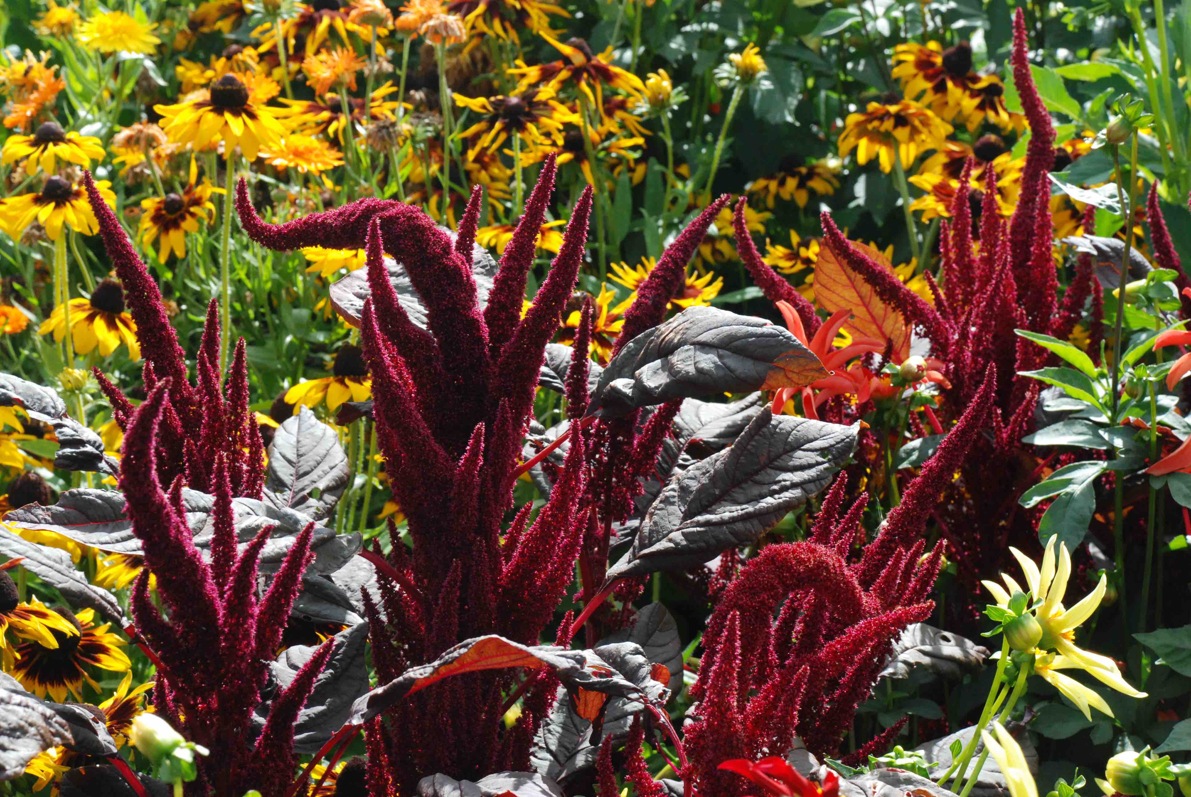I hardly dare mention species or varieties because I think it is a minefield but most could be lumped under A. hypochondriacus for convenience and to get you started. They are fast-growing leafy plants with terminal inflorescences followed by sideshoots that bloom later and create a bulky, substantial plant.