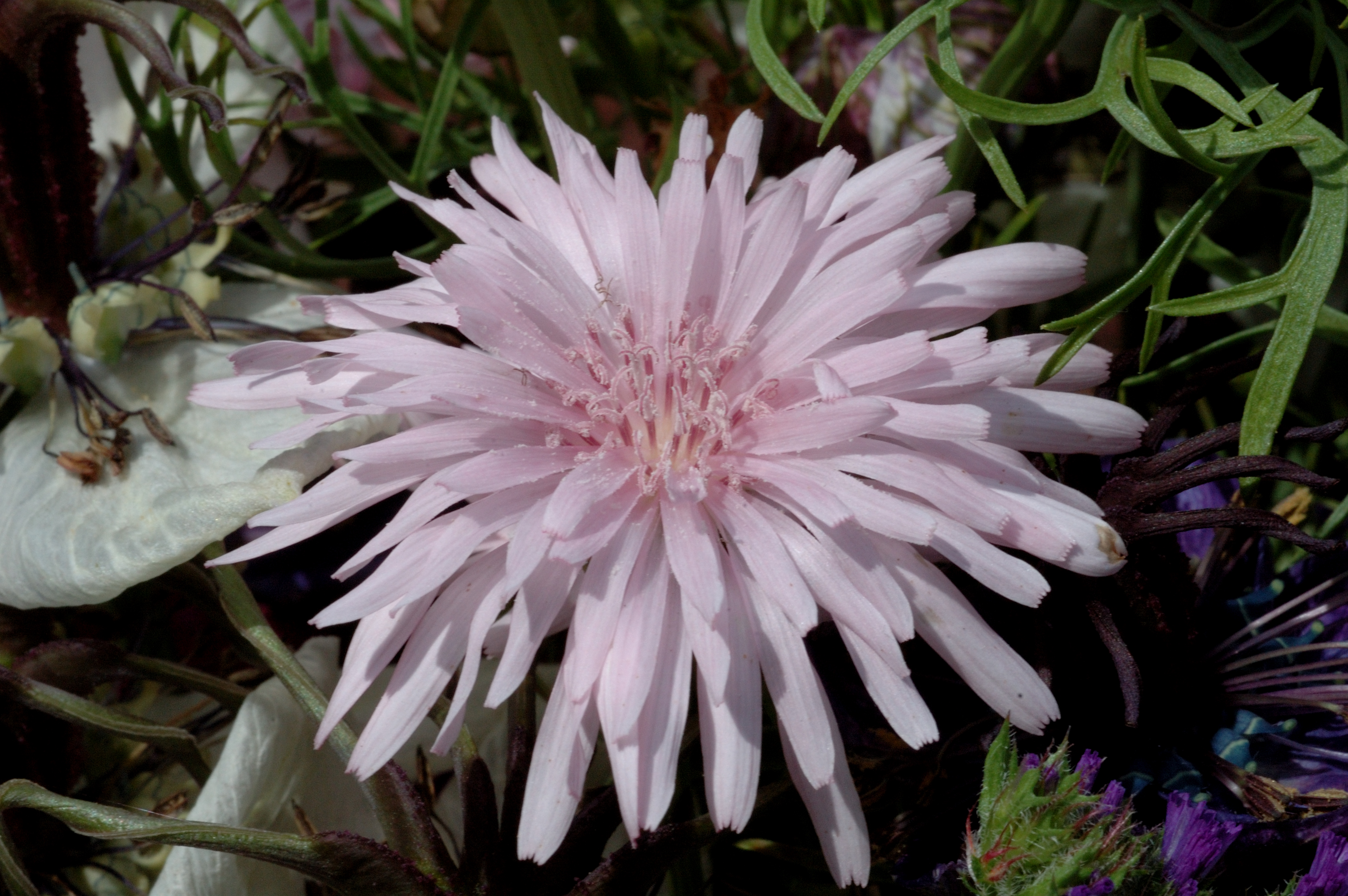 Crepis are dandelion-like plants from North Africa and the Med into Northern Europe. Most are yellow-flowered ‘weeds’ that need not detain the attention of gardeners. But one that deserves a place in the garden is the pink-flowered Crepis rubra. Despite the name it is not red but pink, and a very pretty flower. There is something very satisfactory about dandelion flowers and there are a few true taraxacum species that are shaded with pink. But here the pink is pure and unsullied, as gentle and alluring as the pink-flowered chicory, or candyfloss (cotton candy) but on a much neater plant. This is an annual that really needs sowing where it is to bloom and the young leaves are long, pale green and notched just like a dandelion or chicory. The plants send up a long succession of blooms on long stems and, at its best, is beautiful. The plants do not last that long and are in flower for six weeks or so before they exhaust themselves.