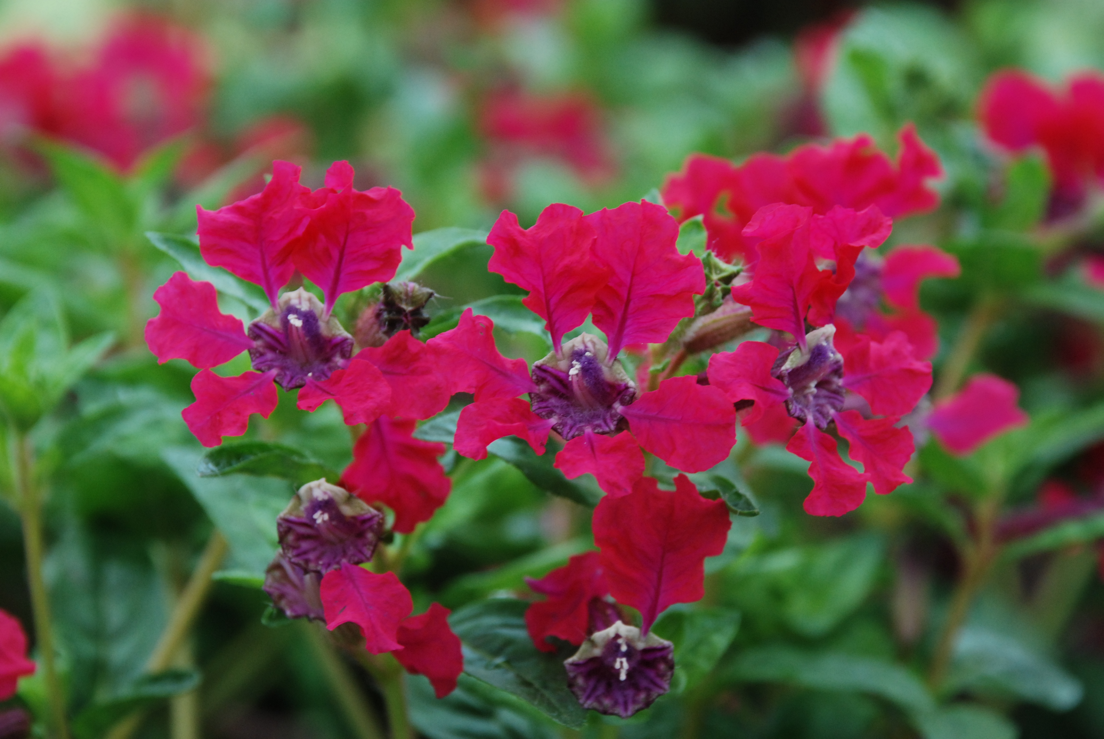 I have posted before about cupheas but mostly those with a long floral tube and insignificant petals, commonly called cigar plants. Here we have Cuphea blepharophylla, named for the eyelashes around the leaves! This is an annual that can be raised from seed, with some care, and available with petals in shades of red, crimson and/or purple. The blooms are dense enough to make a good show and they keep on blooming all summer into autumn. They need warmth and shelter to do well and are perhaps best in patio pots than left to tough it out with thugs in the border but they are worth experimenting with. I have my packet ready in the box and will be having another go with them next year.