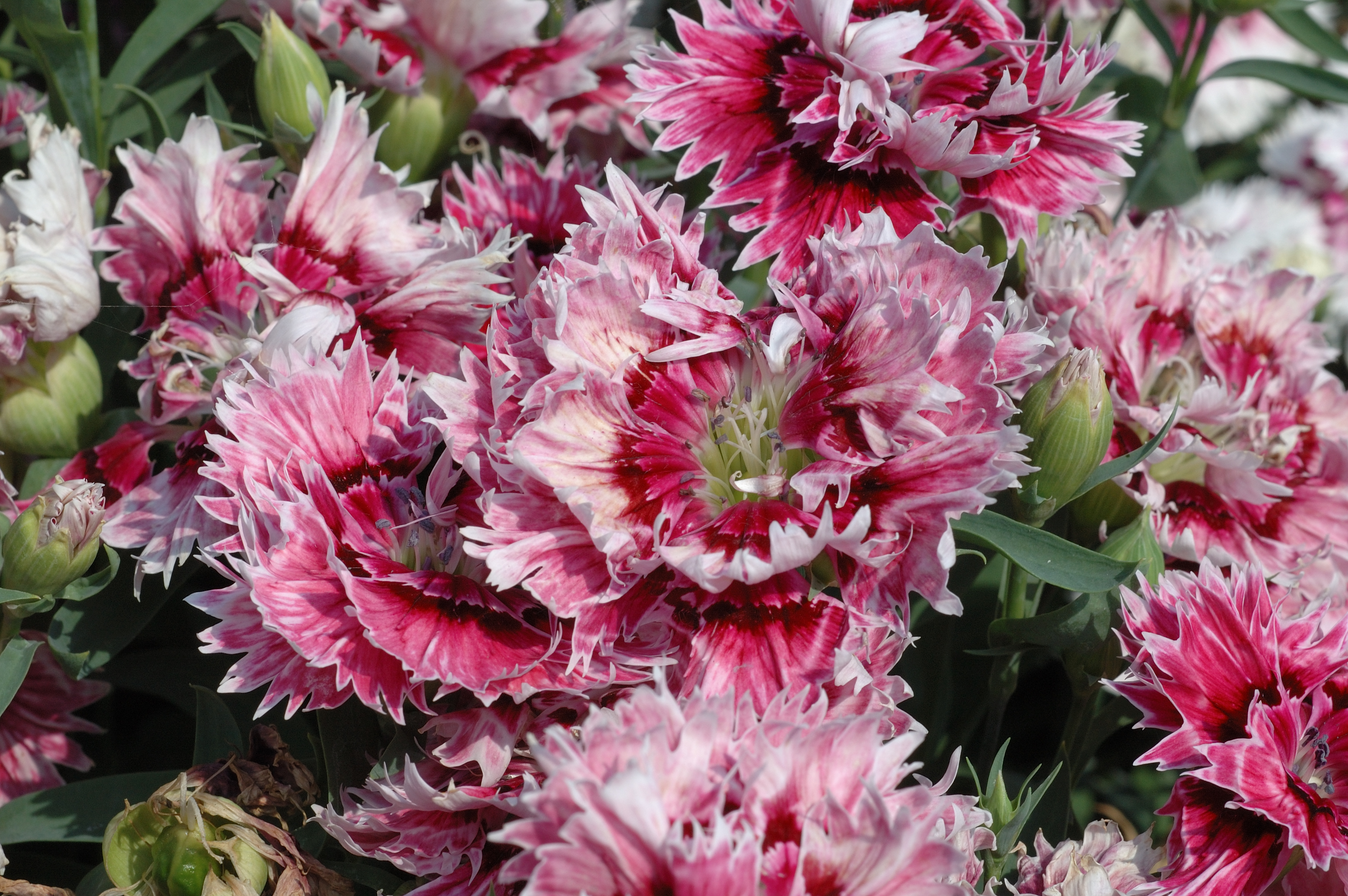The idea of a garden without dianthus of some kind is as sad as one without a rose or daffodil. They are a varied bunch and include alpine pinks and florist’s carnations as well as sweet Williams. Most are perfect for picking and most are very fragrant, but not all. They are generally sub-shrubby with a woody base and narrow, often glaucous leaves. Most of the perennials flower in early summer. The typical garden pinks bloom in June but the Allwood hybrid pinks bloom all summer, after an initial early summer flush. Most are hardy but hate poor drainage. Most are tolerant of, or prefer, alkaline soils. None are very long lived and garden pinks are at their best in their second year, declining after their third. They are easily increased by cuttings. Sweet Williams are biennial and are usually sown in early summer, to bloom the next year but they can also be propagated by cuttings if a plant is exceptional.