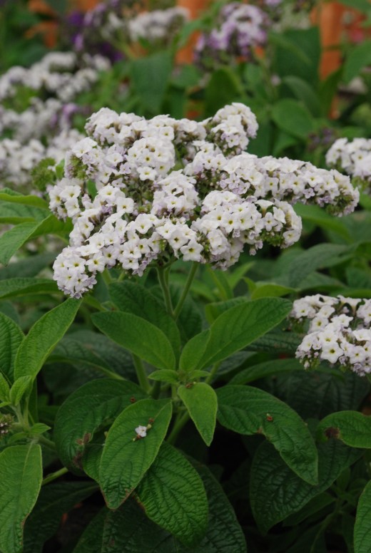 I would never bed out with heliotrope, they are rather too special and deserve a place in patio pots where it is often more sheltered and warmer, which will help growth and also help to appreciate the perfume more. Heliotrope always looks good with silver foliage but more traditional flowers, especially in pink, such as petunias and diascias looks good too. Heliotrope is also loved by those most discriminating of pollinators, colourful butterflies.