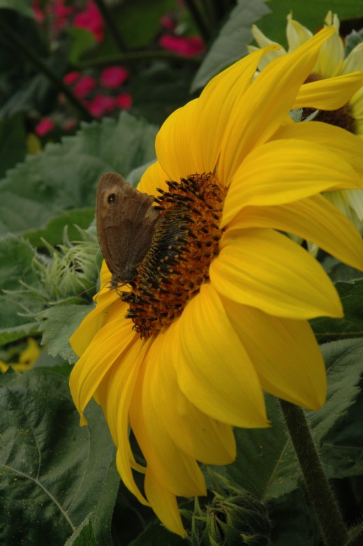 The plant has been grown in Europe since about 1510 but had been cultivated in Mexico for thousands of years and then throughout what is now the southern states of the USA. It is no wonder that it was so highly valued, as a foodstuff as well as for its ornament, with huge flowers resembling the sun. The flowers are not just bright and cheerful but the placement of the disc florets is a fine demonstration of the Fibonacci series with spirals of flowers, left and right, according to the Fibonacci numbers. It is wonderful when a simple flower can teach us so much.