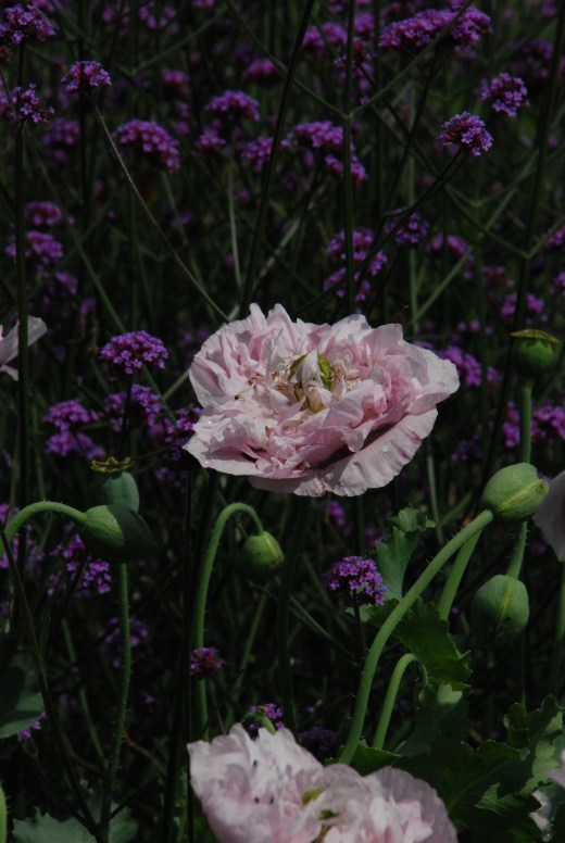 I confess that I have yet to be seduced by the opium poppy. It is a rather coarse plant and though the large, blue-green leaves are attractive and the plants bold, growing to 1m high in rich soil, the flowers are fleeting and there are not that many on each plant. Deadheading will prolong the flowering season but you will only get a month of flowers on a plant. And although the first, terminal flowers are huge, later flowers get increasingly smaller. Of course, flowers are not everything and the large seedpods, which are, in the kinds that are full of alkaloids, the source of opium, are attractive too. The kinds that are grown in gardens are not, mercifully, rich in opium and the breadseed poppy is the same species.