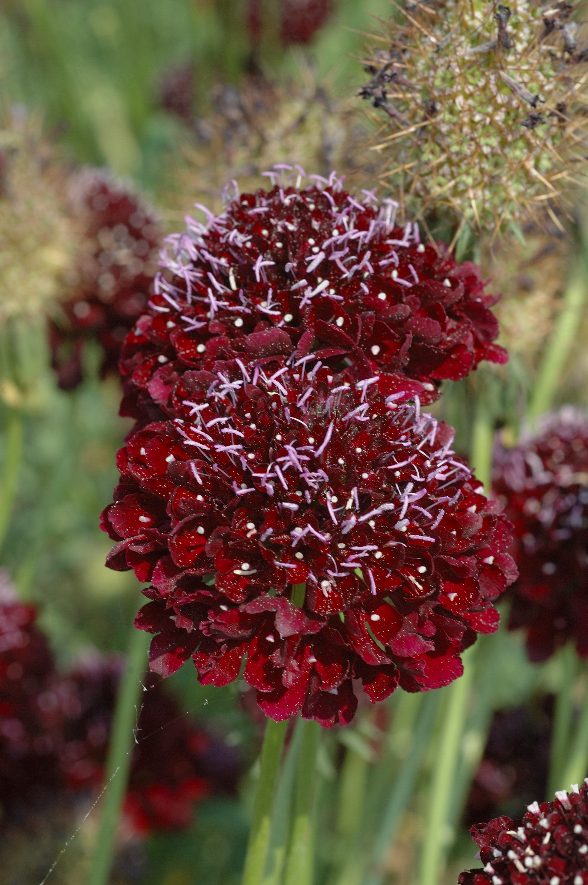 Scabious are best known for perennials, especially in recent years as the low, almost ever-flowering butterfly magnets. Scabious are fairly familiar flowers, making squat domes of petals, often with a ring of larger petals around the edge. The fact that these ‘flowers’ are actually heads of florets. But these are not in the Asteraceae. They are related to teasels or at least they used to be. They were placed in the Dipsacaeae, which made some sense to me since structurally a scabious does look vaguely like a teasel. But now they are in the Caprifoliaceae and are related to honeysuckles. I just don’t see it. Damn that DNA analysis. All these revisions based on DNA are all very fine but the old system was based on what we could actually see!