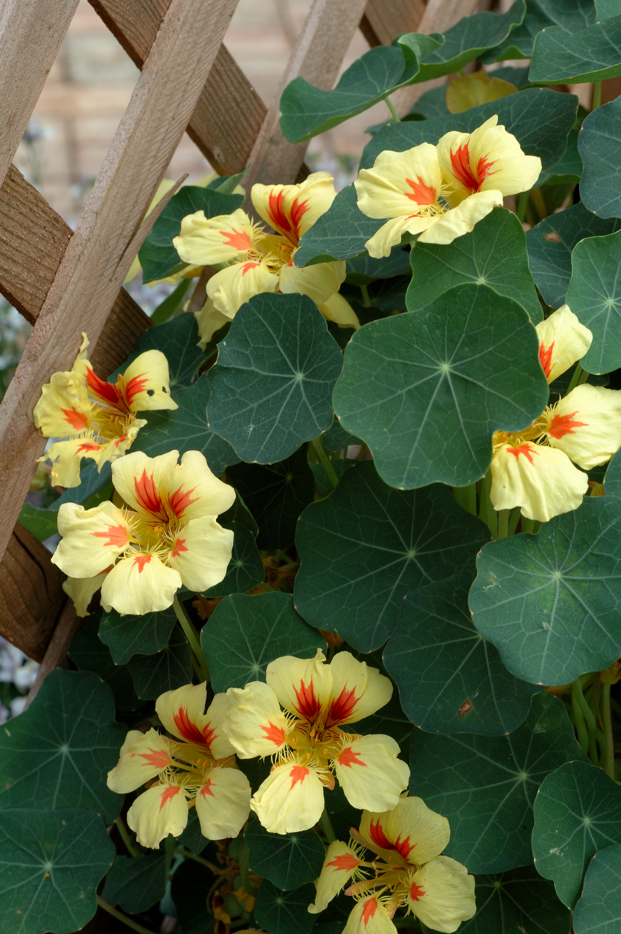 Despite their ease of cultivation, I have often thought they were the most difficult annuals of all to grow. This is because they attract a host of insects! They are more popular with cabbage-white butterflies than cabbages, and they get attacked by blackfly quicker than broad beans! The plants are frequently ruined by these pests. For this reason it makes me laugh when you hear them recommended as companion plants to discourage these pests. The only logic I can imagine for this is that they are sacrificial plants, attracting the pests away from the crops. The other problem, apart from self-seeding, is that, in rich soils the plants can be leafy and vigorous and the flowers can be hidden somewhat. They are recommended for dry banks but then blackfly can be really destructive. You can’t win sometimes and breeders have been working to produce nasturtiums with better-placed blooms, above the foliage.