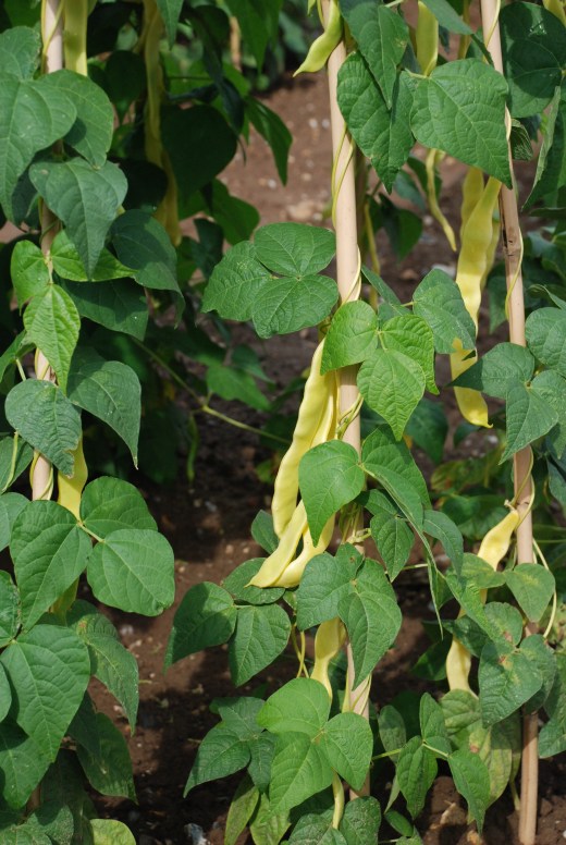 All French beans are tasty and some may be stronger in flavour than others. Most of the purples go green when cooked but the yellow ones stay yellow. I think that the texture of the yellow is more waxy than the greens and  I like them. All are squeaky if cooked lightly. The big advantage of the yellows and purples is that they are easy to find when picking. Do pick carefully so you do not damage the plants – don’t just grab and pull.