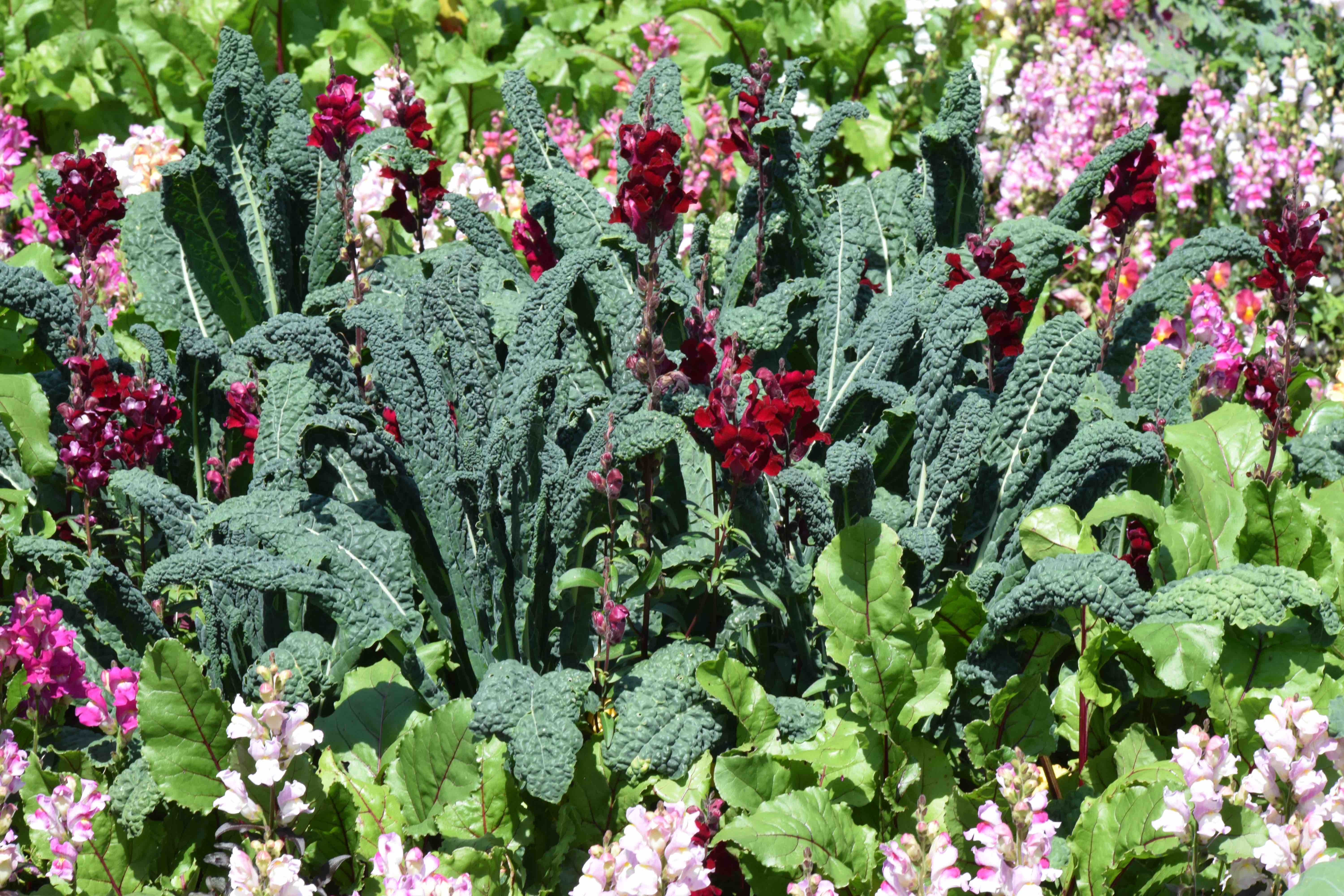The most popular of all are the curly kales, in both green and red, though ‘Red Russian’, with deeply cut leaves is a good plant too. It is sometimes grown for baby leaves now, along with the green ‘Fizz’. The problem with the curly kales is that grit and fallen leaves can accumulate in the leaves which is a pain in the kitchen. I think this is why ‘Cavalo Nero’ is so popular – the leaves are narrow and blistered and easier to prepare. This ancient Italian kale is dark green so very nutritious. Look out for ‘Black Magic’ which is more compact and easier to fit into raised beds. This year I am trying ‘Red Devil’ which is a recent cultivar with the usual ‘Cavalo Nero’ attributes but with red midribs. I have high hopes for it because even the plain ‘Cavalo Nero’ is an attractive plant.