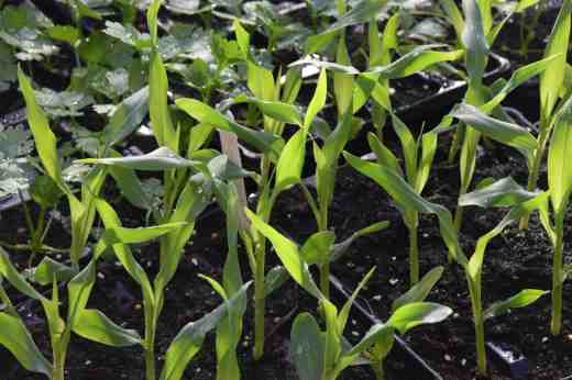 Outside, a sunny, sheltered spot with light, fertile soil is best. Sweetcorn needs warmth and though you can sow it where it is to grow, it is best to start it under glass or on a windowsill so you have small plants to set out after the last frost of spring – sometime in May in Ireland and the UK. When sowing, sow in individual pots. Do not buy pots with a clump of seedlings you have to pull apart. I would say don’t buy seedlings anyway because you won’t know the variety and you need the best seeds for the best crop. Sow the seeds about six weeks before you think you can plant out – no more. You need to plant them out as stocky little plants – if they are sitting on the windowsill, getting tall and floppy you are on a bad start. They are perfect when about 10-15cm tall. It is important to harden them off before planting – getting them acclimatised to outdoor conditions. You can do this by putting them out on shady days, bringing them in at night, for a few days, then leaving them out all the time apart from cold nights. If you plant them out on a sunny day when they have been on the windowsill, the leaves will scorch.