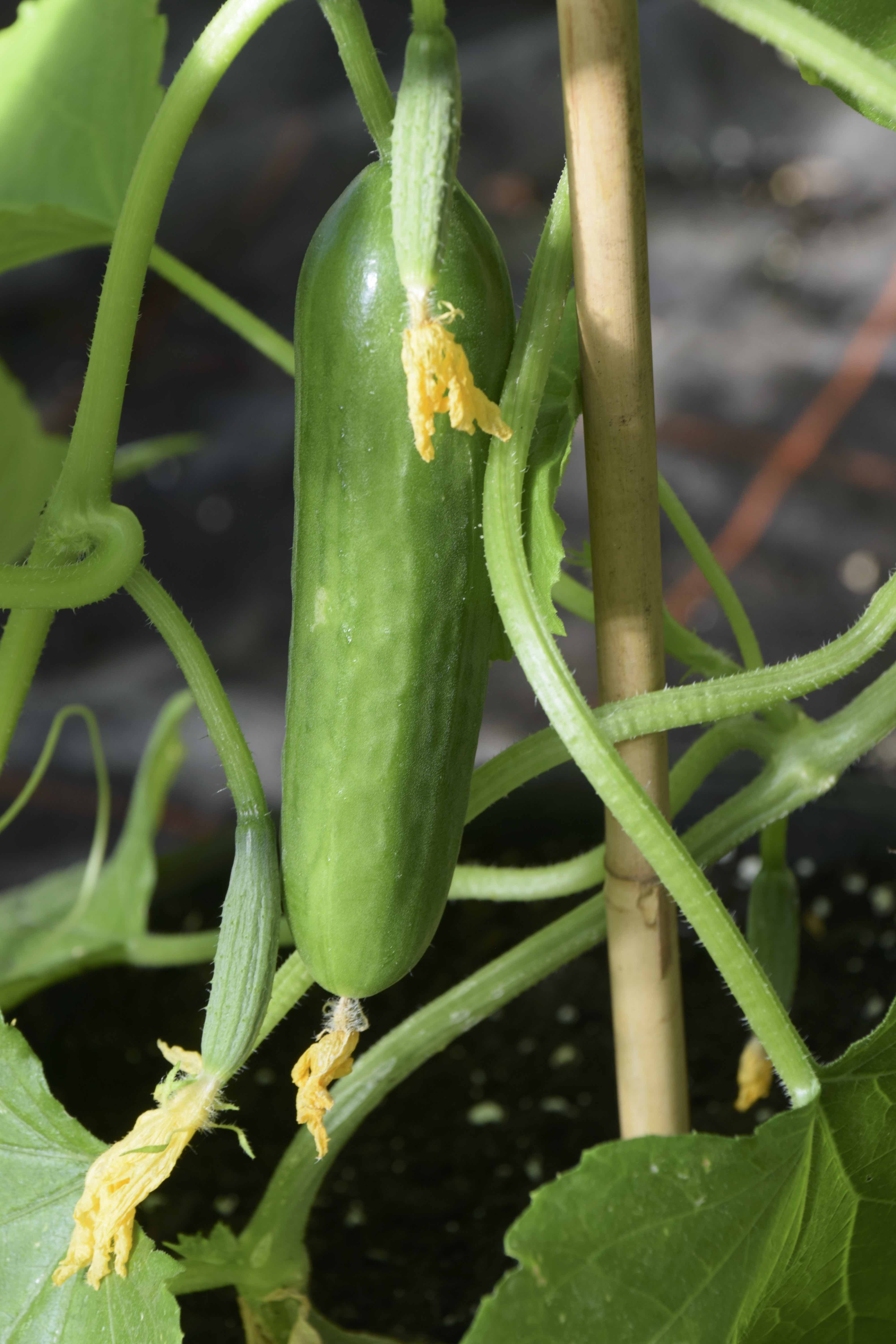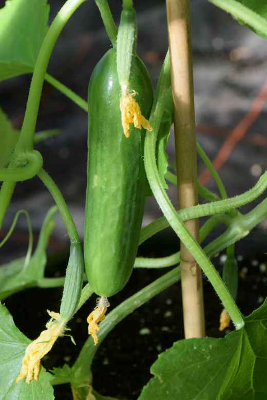 Outdoor/ridge cucumbers and gherkins produce male and female flowers on the same plant and need to be pollinated. Most people dislike them because of the larger seed cavity and thick, often spiny skin but they do have a more intense flavour. They can be grown outside in sheltered areas and make decent crops when grown in pots on the patio.