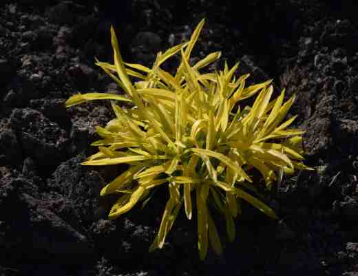 Anyway, it should reach about 60cm high and have the usual goldenrod flowers in late summer. The leaves should remain yellow until July when they may become green – we will see. The plant, at present, is an incredible clump of narrow, bright yellow leaves, more intense than any flower. I suspect that I may learn that it needs some shade, in common with many yellow-leaved plants, but I will make sure it does not dry out and hope it does not scorch. If it stays as good as it is now I will be highly delightedd.
