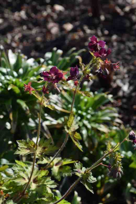 One that is new to me is G. phaeum ‘Springtime’. When I bought it I was having a confused moment because I wondered if it was the new name for a geranium I once grew as ‘Spring Fling’ but a quick google dispelled my confusion because that is G. oxonianum.