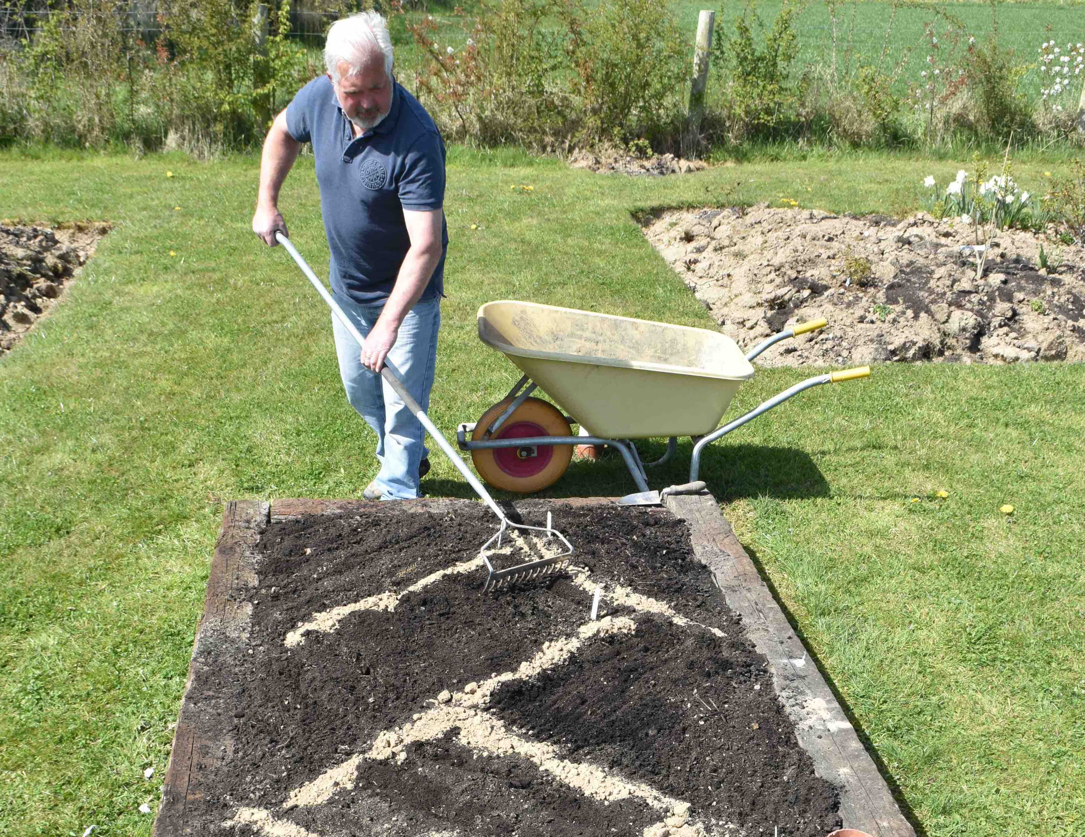 This area is raised because of some soil from the pond excavation but also from a lot of barrowing. There is therefore a good depth of what I could call soil. I dug in lots of leafmould as I built up the bed and when it was rough dug I added more compost. Then, in an activity that would be prohibited if forced on prisoners, I had to break up the lumps of soil, over several weeks, and level and shape the bed.