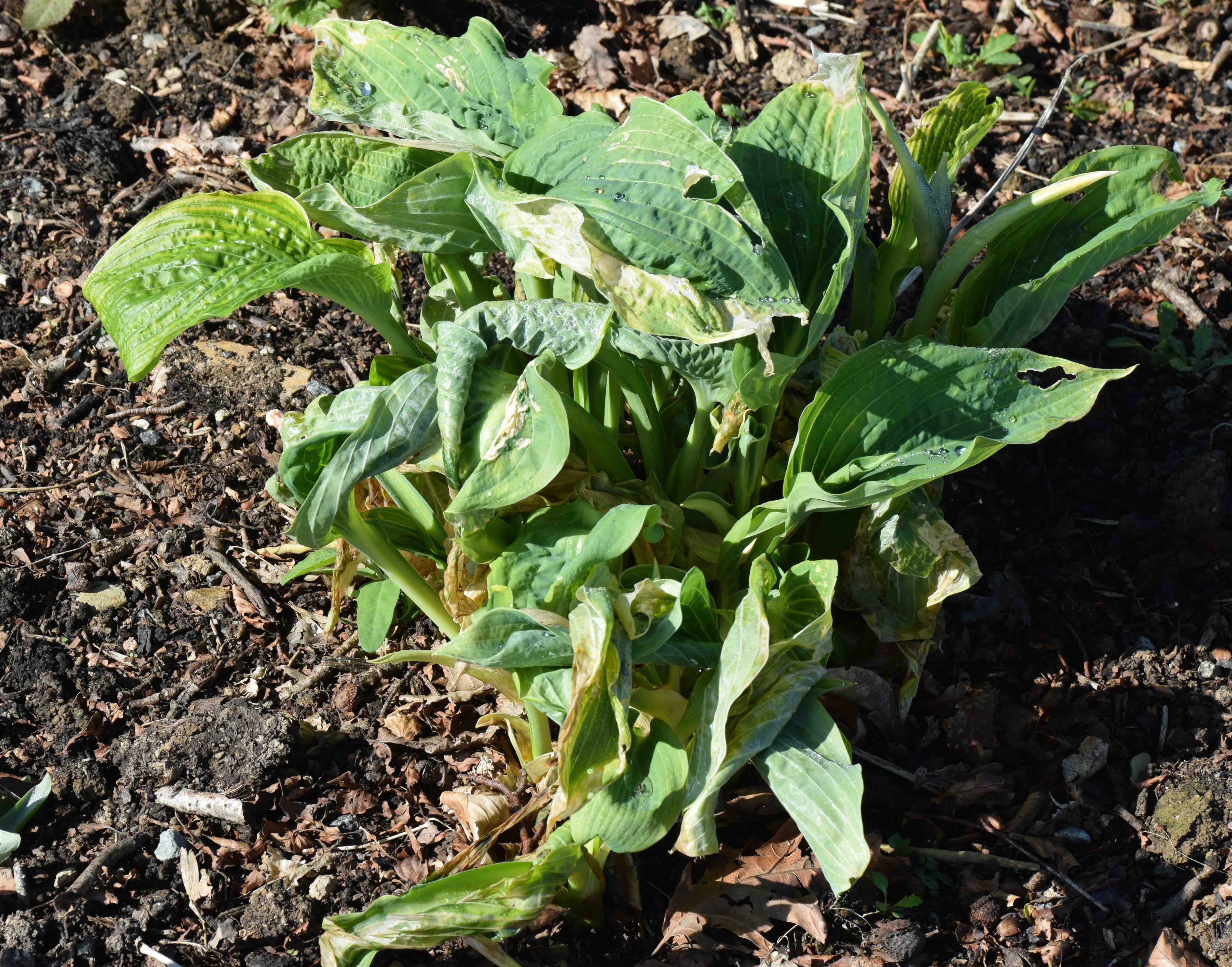 ‘Empress Wu’ that giant hosta has illustrated this well in the garden this spring. I have three clumps, two of which are in a bed either side of a young styrax (which is not exactly ecstatic after the cold spring). Although this bed has a curved hedge around it on the south side (still very young) it is largely sunny and gets morning sun. The persistent April frosts have done what the mid May frost did last year and has turned the first leaves to cling film. They will be OK but they look unhappy.