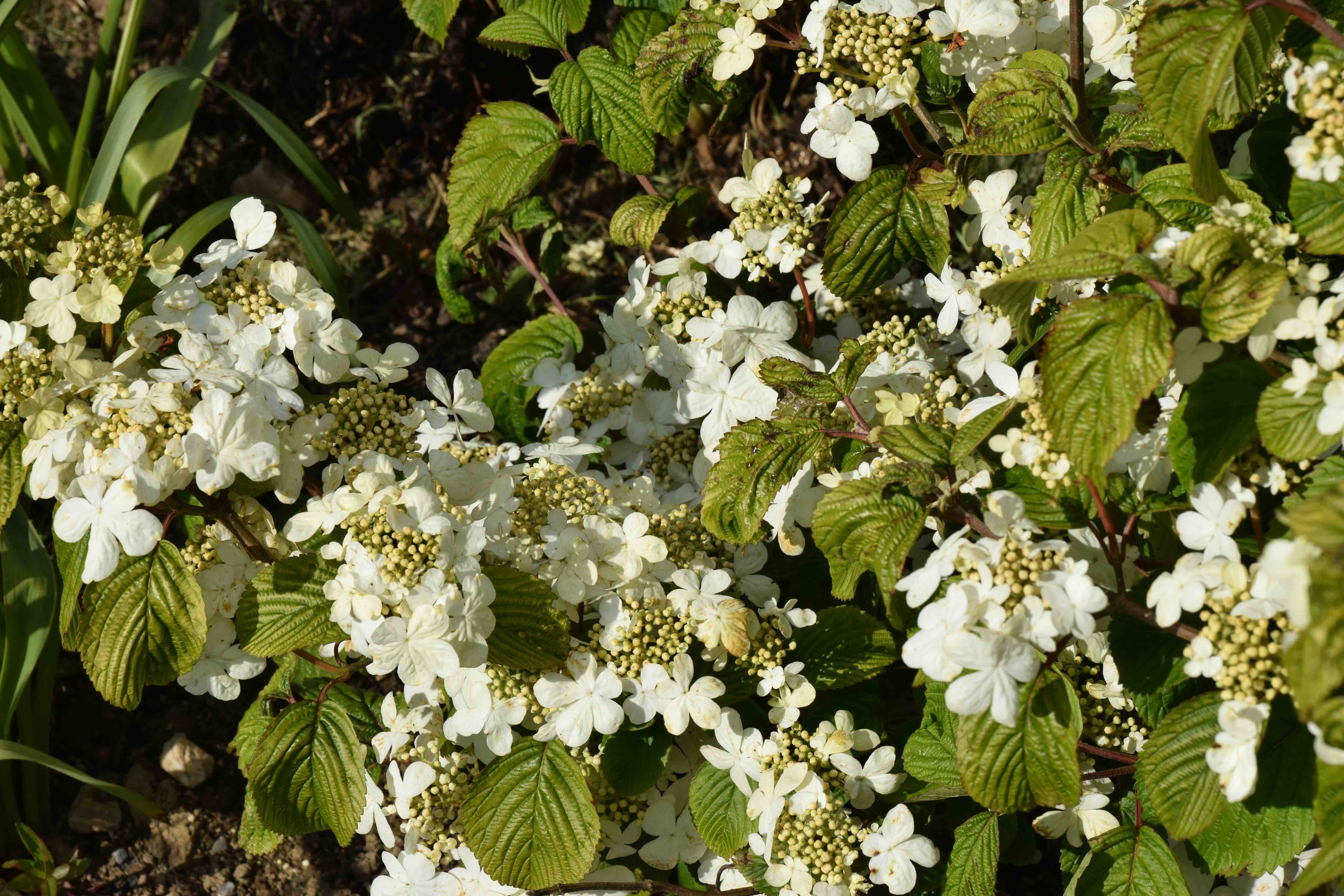 I planted two and this is ‘Shasta’ which is a hybrid of forma tomentosum and ‘Mariesii’. It is supposed to have larger flowers than others and there are supposed to be a few sterile florets in among the central, small, fertile florets in the cluster. I can’t say that I can see any but perhaps they will come as it ages – or I have been done! The flowers are also supposed to be purer white than most and it is supposed to fruit better than most. It was introduced in 1979 in the USA.