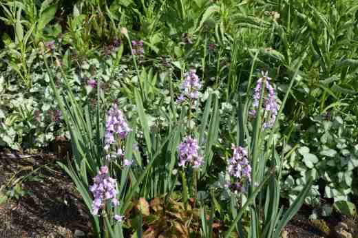 Of course, I couldn’t just plant blue bluebells but chose ‘Miss World’ (another un-PC choice!) which is lilac pink. I have planted them among a ground cover of Lamium ‘Beacon Silver’ which should be capable of withstanding the dying bluebell leaves and the two of them are popular with bumblebees. I have noticed that the spikes of this are slightly branched, which seems unusual to me, and some of the blooms are doubled (or distorted if you are not a fan of them). They are planted under my young ornamental cherry and I thought the two might look good together but I got my timings way off so I will pretend to be clever and say that I planted them to carry on the pink theme!