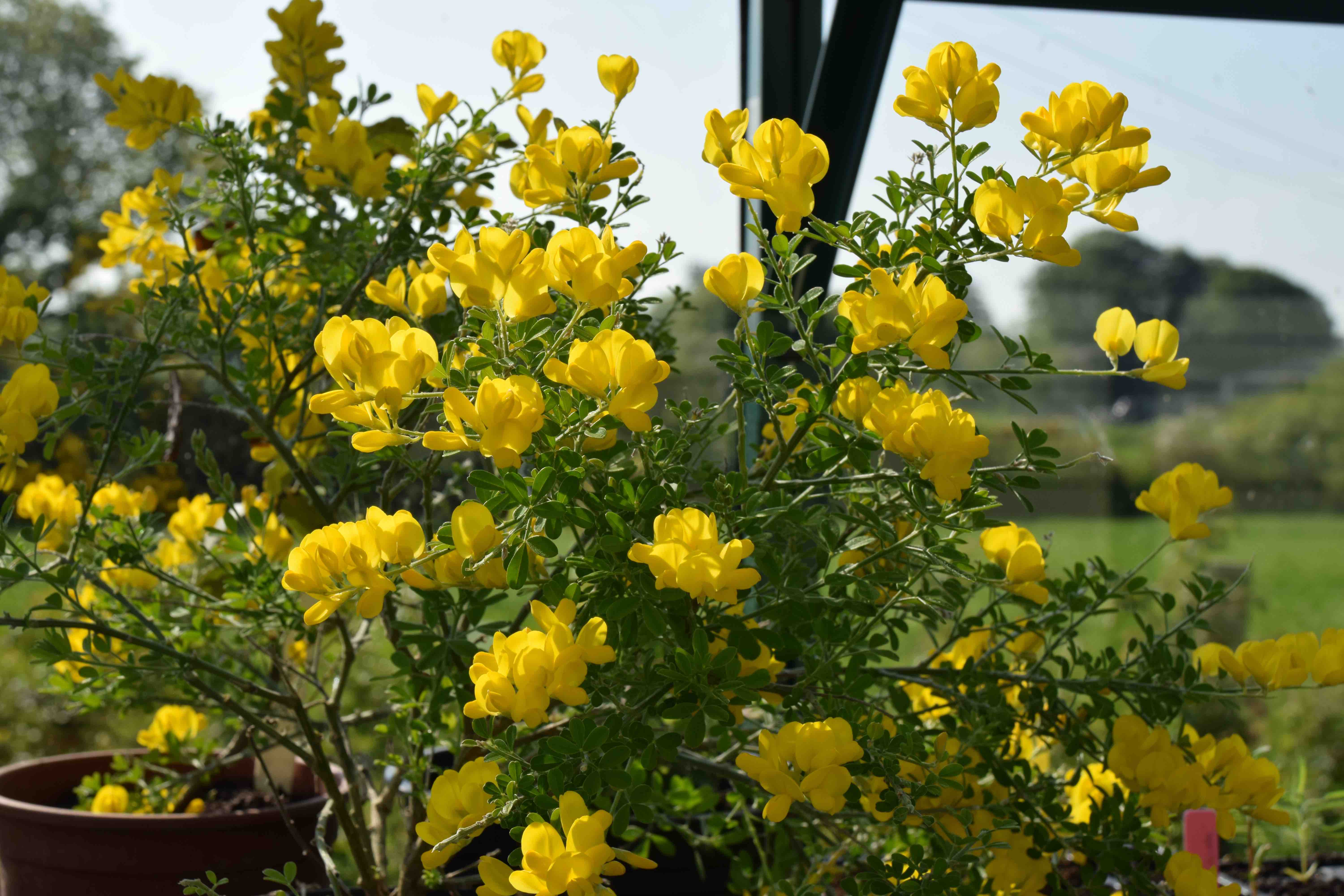 And talking of yellow, walking into the greenhouse is a treat because I am swathed in the sweet, lemony fragrance of Cytisus racemosus.