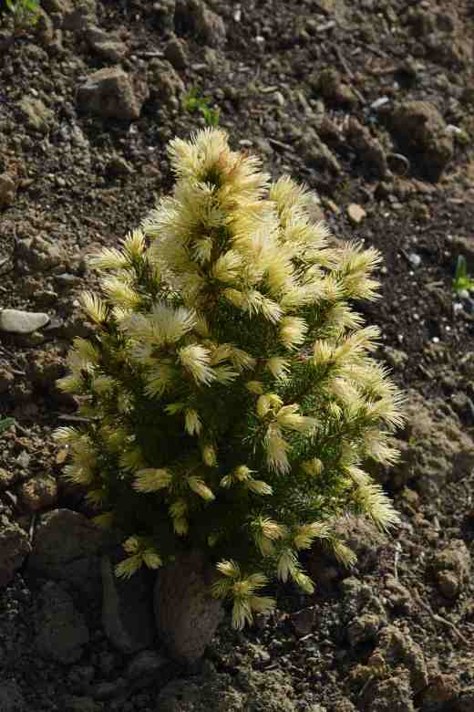 But back to Picea glauca var. albertiana ‘Daisy’s White’. This really is not the sort of plant I like but I am glad I added it to the garden. It is a slow grower, reaching about 60cm high in ten years and the compact, conical habit makes it dumpy and not at all graceful. Most notably the young foliage emerges almost white and stays that way for several months until it finally greens up. It is not so much a plant as a pet. It arose as a sport on Picea glauca var. albertiana ‘Conica’ in the Belgian nursery of L. Jeurissen-Wijnen and named after his grand daughter. As is so often the case, how plants are used is the key and I am sure I would not like this at all if it was surrounded with heather or Technicolor heucheras. So I will have to be careful how I proceed. It is as unnatural as a blue raspberry slushy but it is fun and it is hardy, and has done what it is supposed to and I am grateful for that.