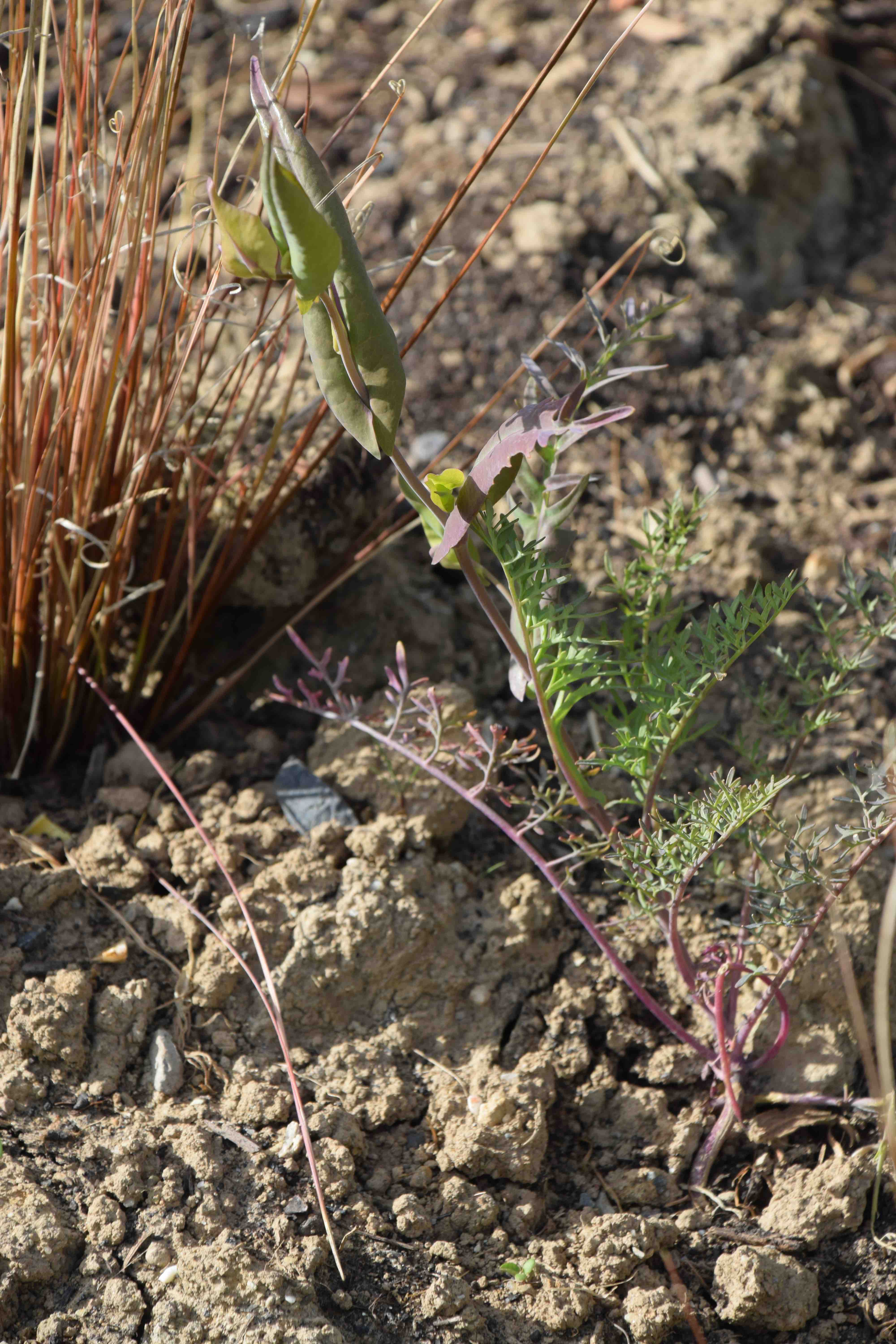 So it is entirely in keeping that I mention a plant with insignificant flowers, and even before it is in bloom. It is Streptanthus farnsworthianus – worth growing for the name alone. It is an annual brassica, that grows in the foothills of the Sierra Nevada in California where it, and its relatives, are known as jewelflowers. There are about 35 species, most native to California and 17 are classified as rare. They are recognised by the difference between the basal leaves, usually dissected, and the stem leaves which are simpler and showy. The small flowers have enlarged, colourful sepals and small, recurved and often dull, petals.