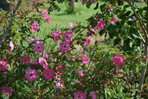 In contrast, some of the ‘shrub’ roses are doing well this year. Most flower on older wood so they take a two years to get into the swing of flowering. Of course, most have a short flowering season and the flowers are not as big as other roses. My roses are now in their third year so I would expect a decent display this year. I wanted flowers last year too but the dry spring really affected the display. Rosa moyesii ‘Sealing Wax’ (above) produced buds last year but none opened because the plants were so dry – it was extraordinary. Later rains did allow good growth and it is this that is now covered in bloom.