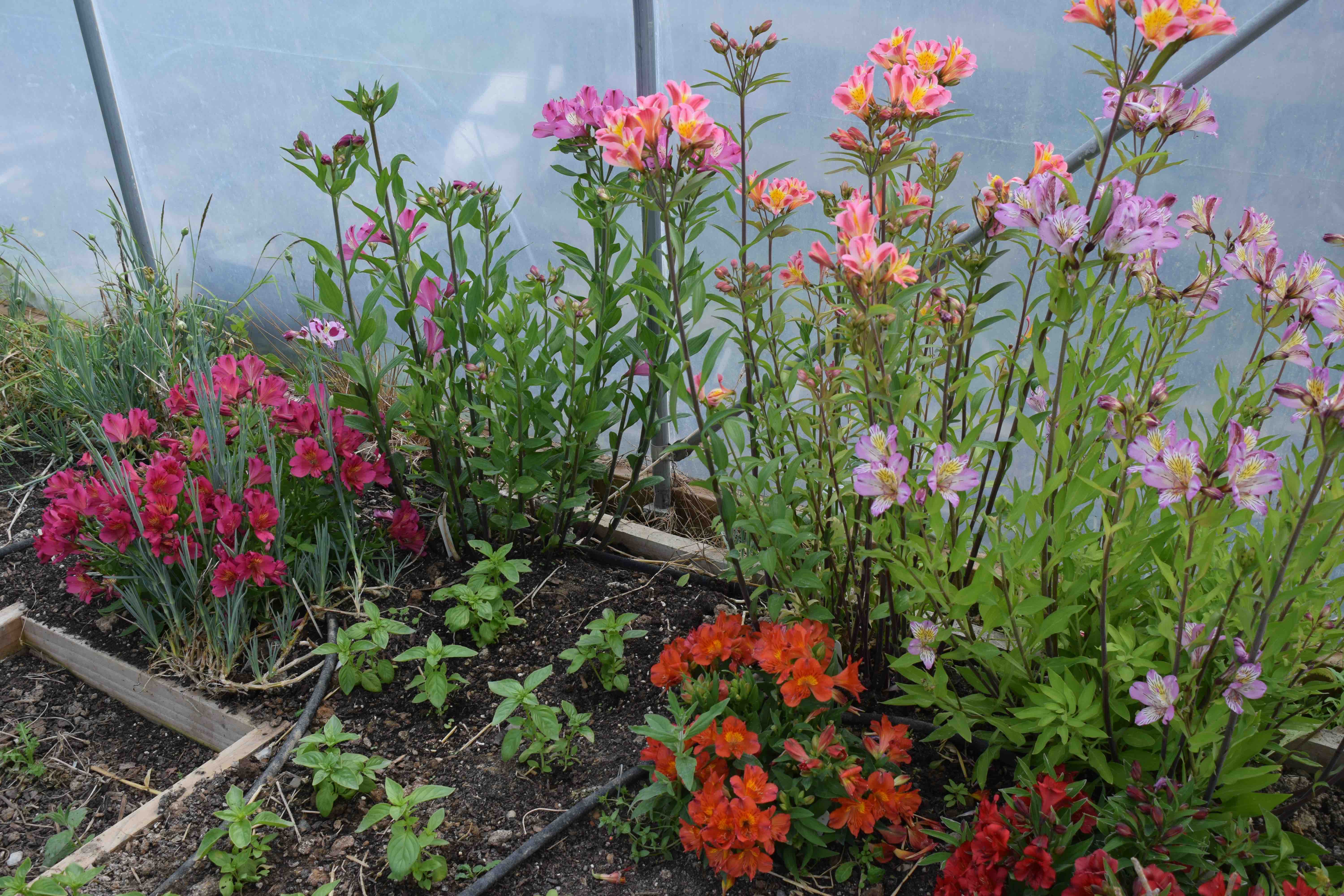 Staying under cover, and with cut flowers, the alstroemerias are flowering well. They were planted a year ago in the polytunnel as a source of cut flowers. They are hardy but under cover they flower much longer than outside.