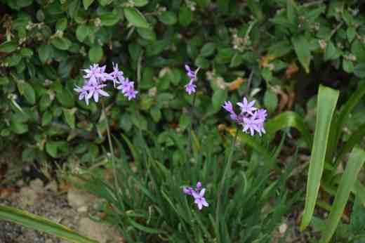 This one could be one of my hybrids but I need to spend some time looking more closely because some of the various species are rather similar. Whatever it is, like T. violacea, it is a pretty plant with fragrant flowers and they bloom for a long time. I suppose that the only problem with the is that, in a dry, sheltered place, tulbaghias can seed rather prolifically and have the potential to be a weed. But they are very nice plants for drought gardens and make good patio plants for a sunny spot and are pretty forgiving if you forget to water them.