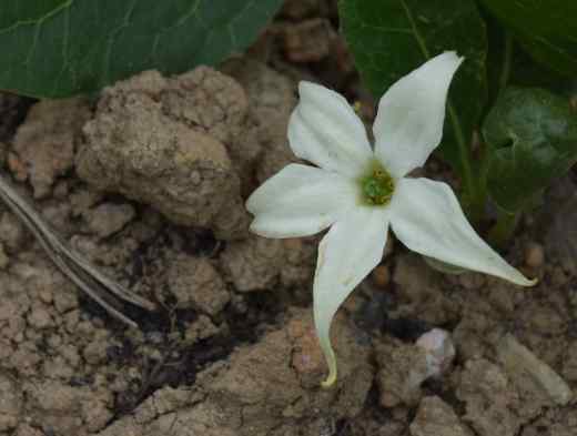 I first met her when I was a Kew student and she was growing in the Duke’s Garden. It was a sheltered place and Jaborosa integrifolia, to give her her proper name, formed a low carpet of dark green leaves. They were rather coarse and had a strange quality that immediately alluded to being a member of the Solanaceae. Being very kind you could say they are bold but, in reality, they are just coarse. They grow to about 15cm long and, in a good clump, cover the soil quite effectively. But the joy of the plant is the flowers that pop up from the underground, creeping stems and just about show themselves through the leaves. They are beautiful, spidery stars with long tubes and they are sweetly scented at night when they are, if you are lucky, pollinated by sphinx moths.