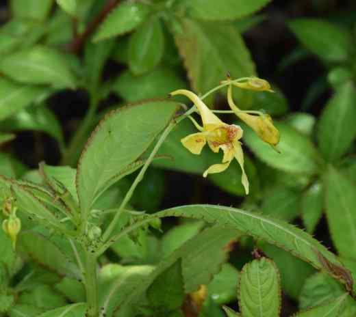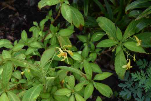 I have been planting some impatiens in the garden. I know the very name will raise the hackles of conservationists who can only think of the Himalayan balsam and consider them all as weeds, but there are many interesting perennial species, largely from Asia, that have potential as garden plants. They are not all completely hardy so it is a risky venture but you have to try. One that had a dodgy start but is now settling down is Impatiens stenantha. This Himalayan species (it is NOT Himalayan balsam) is a perennial that reaches 30cm high and forms a dense clump and does not run like the more popular I. omeiana. The red-spotted, yellow flowers have two elongated petals and are rather strange. It is supposed to bloom from May to autumn and my plant seems on track to confirm this. It is supposed to be hardy provided the roots do not freeze so I think a mulch may be in order. It needs light shade and moisture and I planted mine out in flaming June and it struggled at first. But a week of wetter weather and it is much perkier and is growing well. I like it a lot