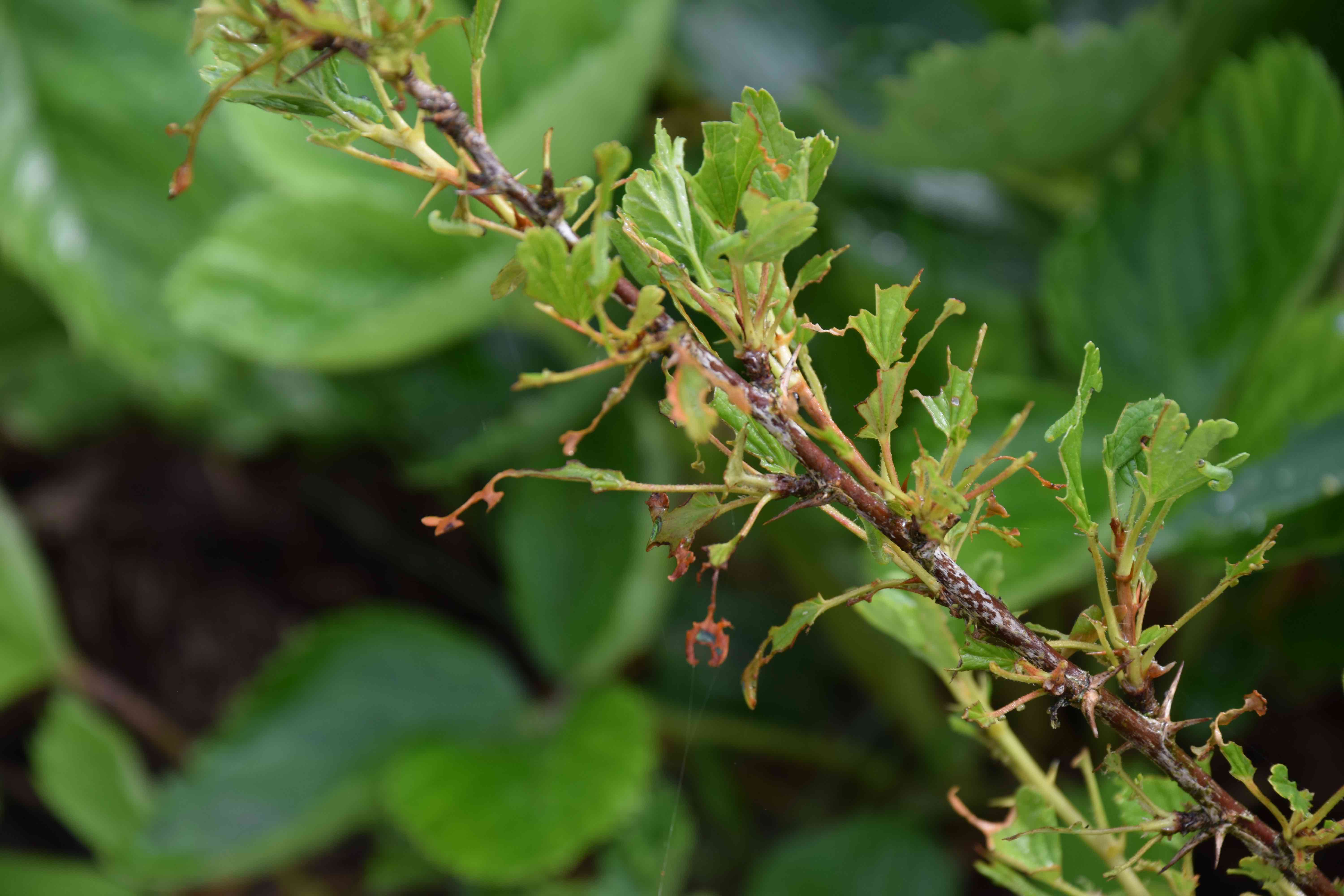 Possibly the most annoying of all is Solomon’s seal sawfly but there can’t be any polygonatum in nearby gardens because, so far, my tiny plants are still leafy and not reduced to a wisp of veins. But I was shocked to find that my recently planted gooseberries have been attacked and they even had a taste of the jostaberry.