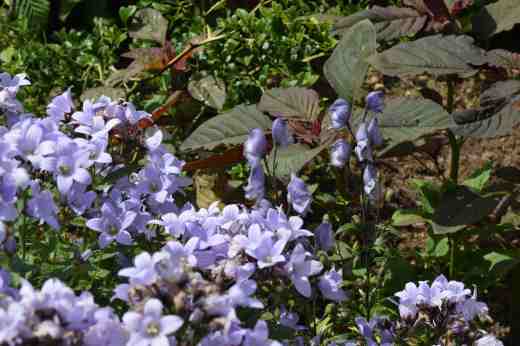 But I thought planting aconitum ‘Stainless Steel’, a plant I particularly like, behind some clumps of seed-raised Campanula lactiflora, would be a good combination. I was taking a risk because although some of the campanulas had flowered last year, not all had bloomed, but I seemed to recall they were pale blue. They were bought as ‘New Hybrids’ and the poor plants, raised several years ago, had been in a cell tray for too many seasons and only five had made it till I was ready to plant them. Maybe there were exciting pinks and white in the mix but, as it turns out, all five are rather similar, but very lovely, blues. The snag is that, being the first year of growth, the aconitum is only 1m high, the same as the campanulas, and almost the same colour. You could almost say it is camouflaged!