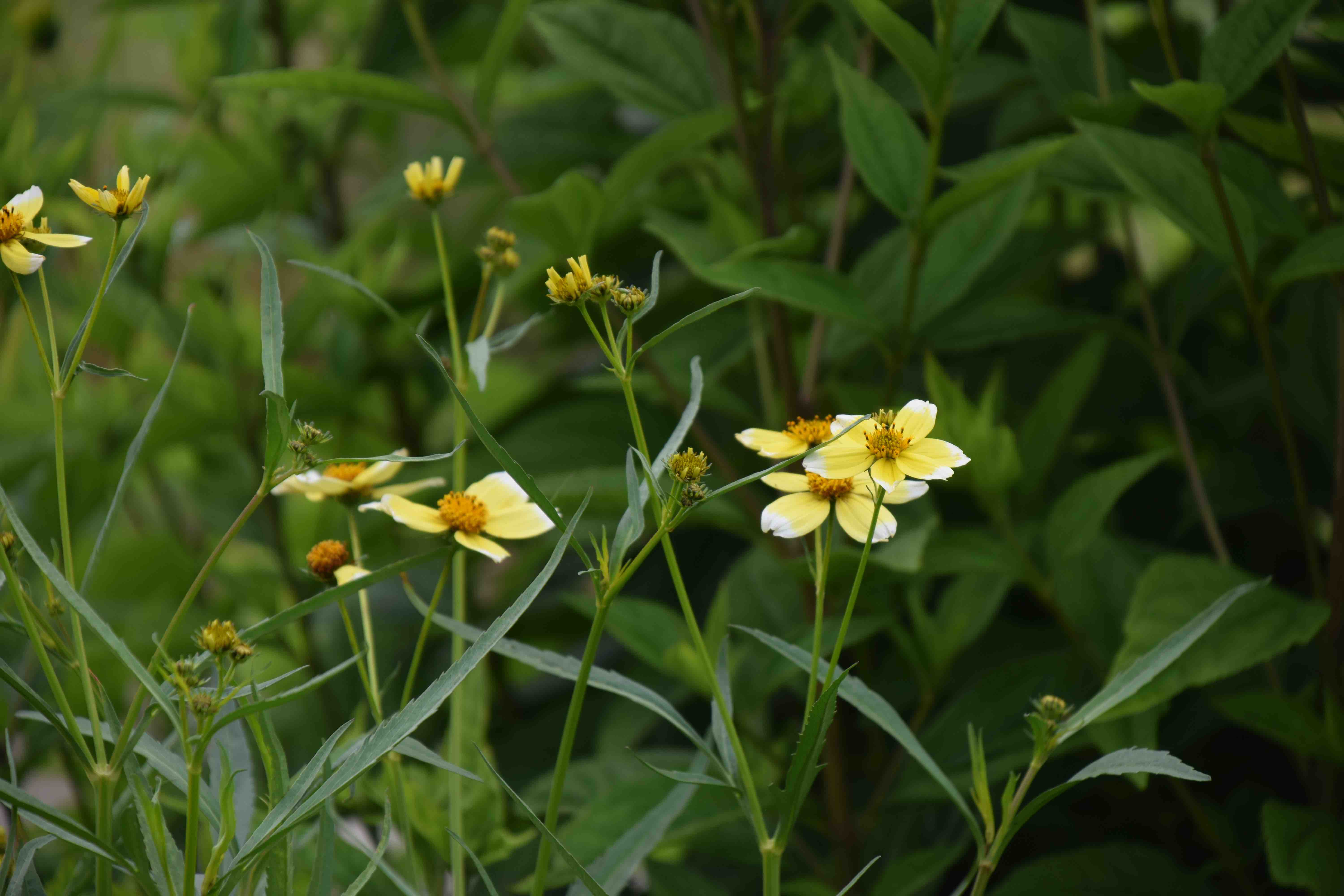 Just starting to show itself is newcomer to the garden Bidens heterophylla (or B. aurea) ‘Hannays Lemon Drop’. This is a naturally occurring and domesticated form of Arizona beggarticks! It is a tall, slender, hardy perennial (think Verbena bonariensis) with narrow, deep green leaves and five ‘petalled’ yellow flowers that look as if they have been dipped in cream. I am sure I will return to this because it should have a long flowering period and it has only just started. It is supposed to be a bit of a spreader but so far it has the manners of a duchess and is a neat cylinder of stems.