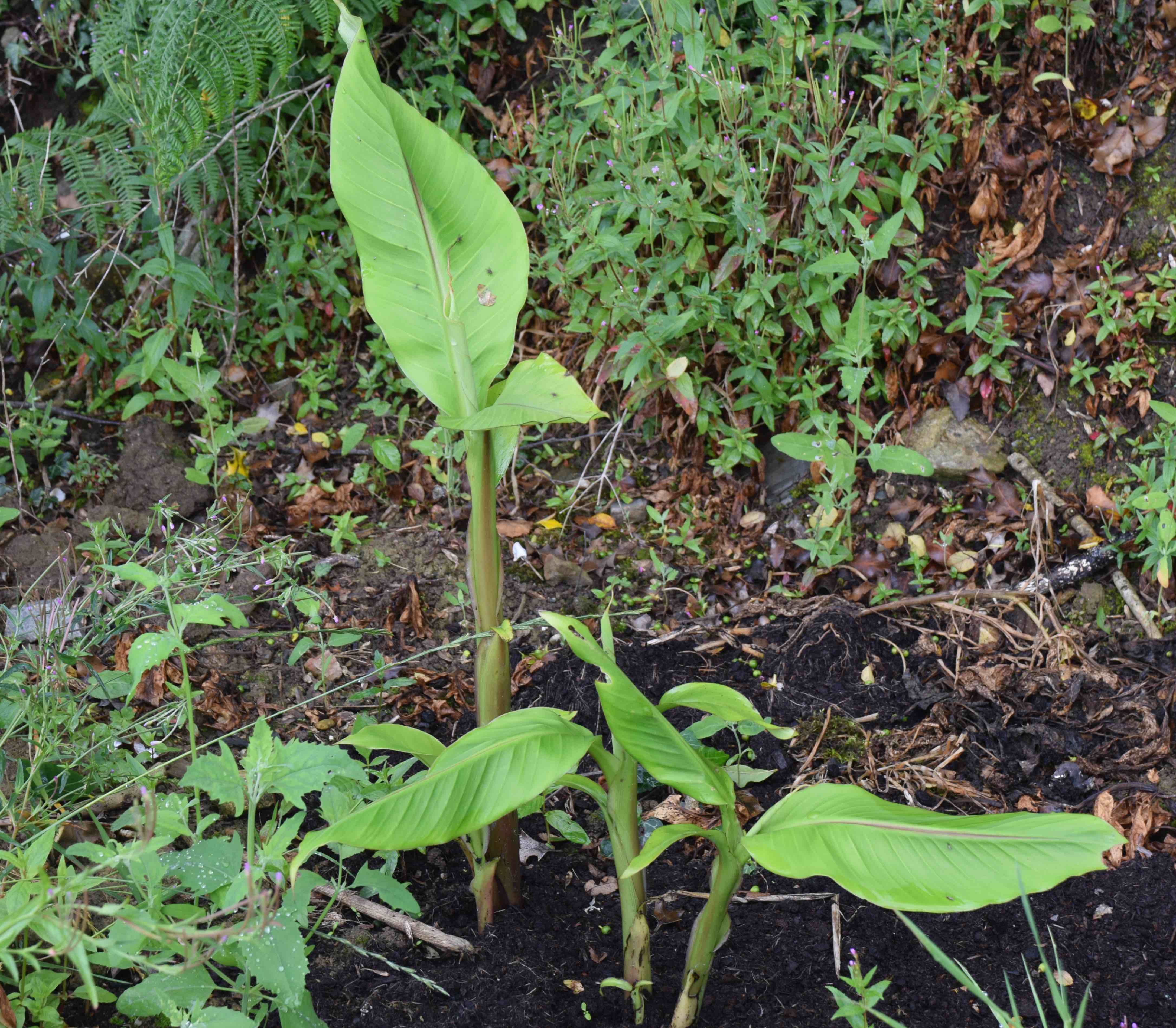 Although I grow neither ginger nor banana to be edible, the rhizomes of the related canna are. I suppose that I should also grow culinary ginger, but have not gotten around to it yet.