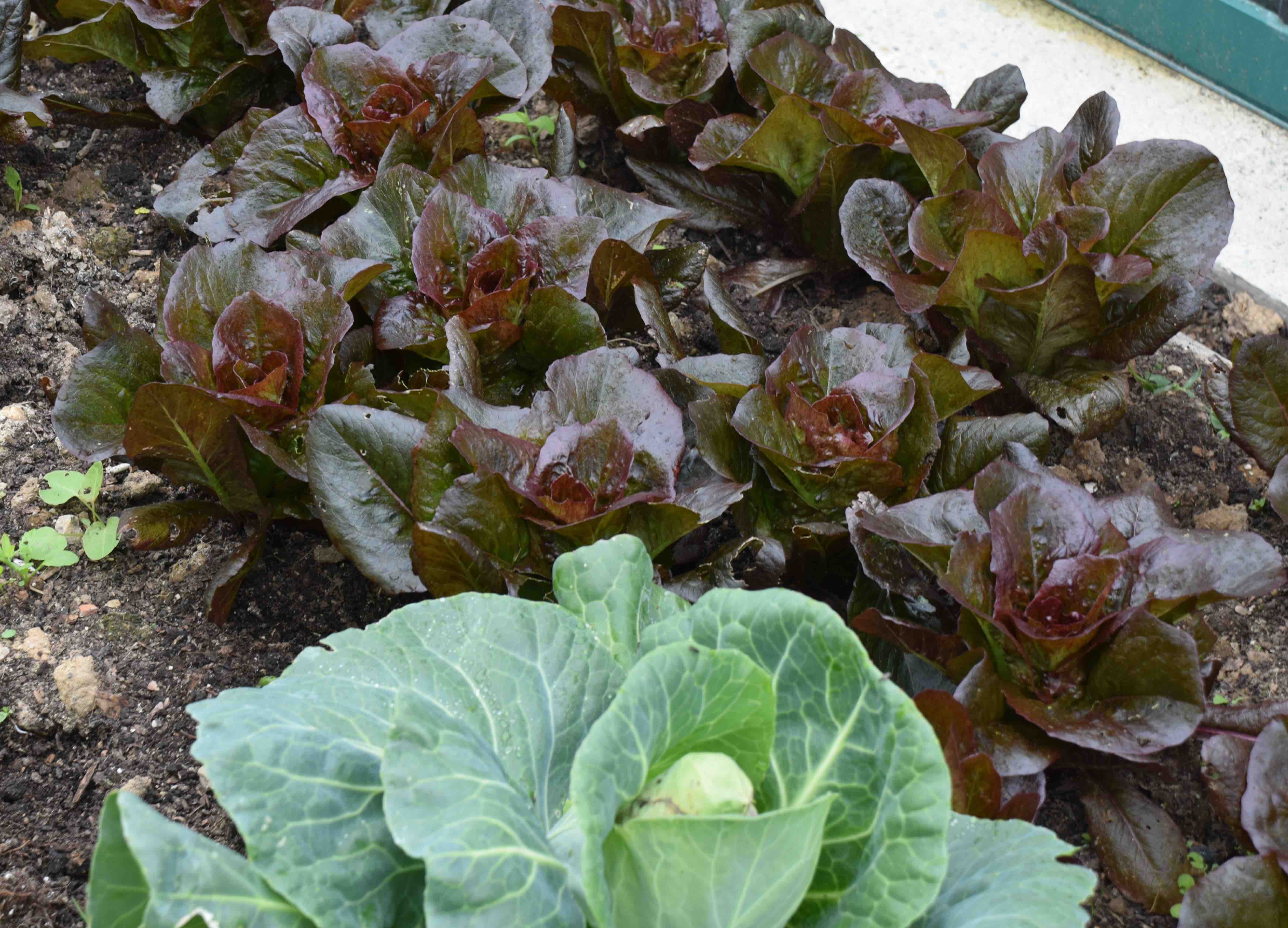 So as soon as my early calabrese was harvested I had some young lettuce ready to pop in the space. It is always best to replant with a crop that is unrelated and to give the soil a boost with some fertiliser. I raked in some fish, blood and bone and planted ‘Intred’ lettuce which are now almost ready to harvest. I planted quite close so every other one will be harvested small and the others allowed to mature. Everyone has their favourite lettuce but I like crunchy lettuce and it is hard to beat ‘Little Gem’ or ‘Intred’ which is a red-leaved version. They are easy to grow and very compact so you can plant closley. I also like the fact that they are small so there is no ‘half heads’ sitting in the fridge – there is little point growing fresh veg if it is going to sit around before it is eaten – well I think.