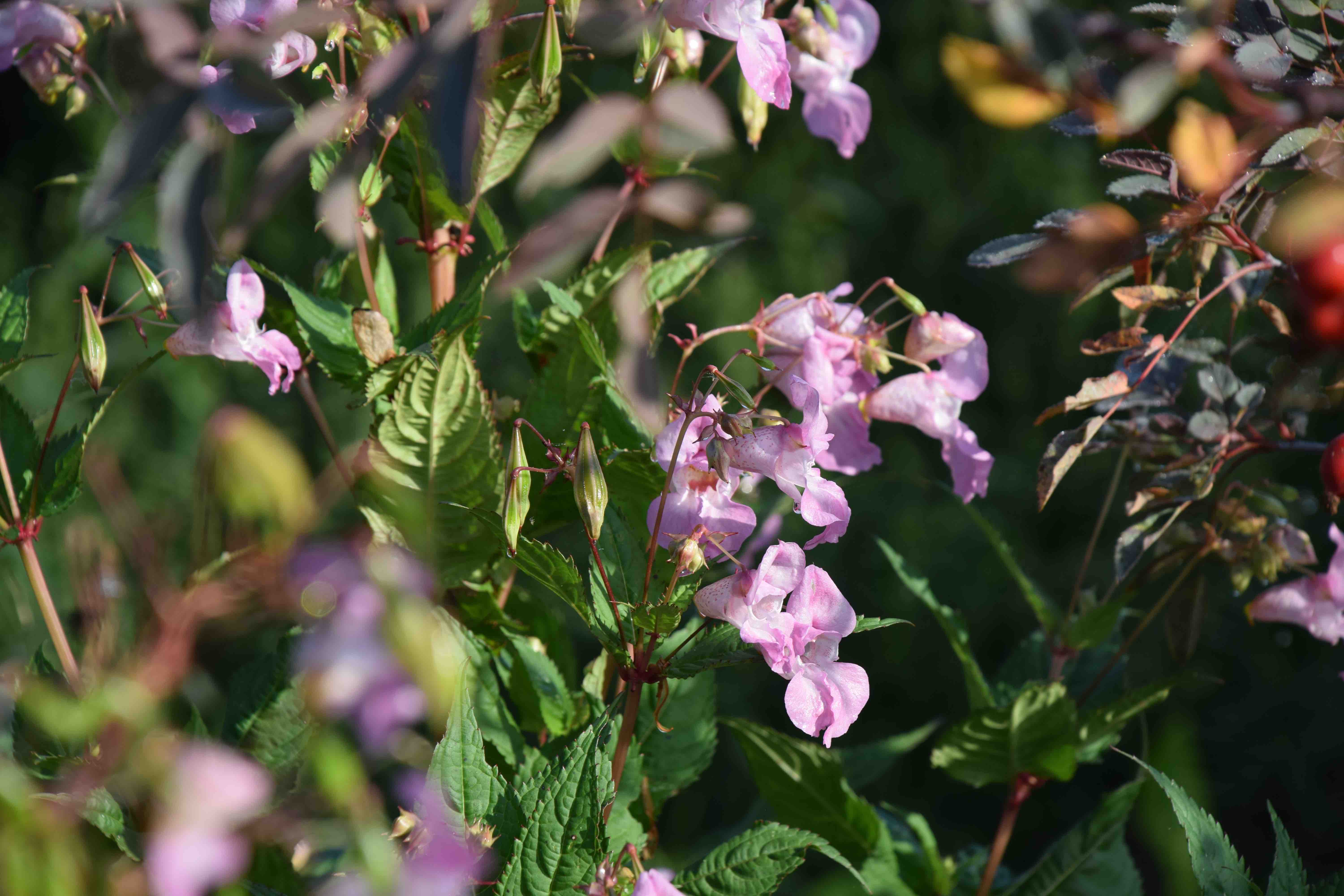 This one is rather special but I have almost as much affection for the I. glandulifera that have appeared in the garden. I had no idea where the plant came from when it appeared last year. There are some down the road but at least a mile away. Where it grew the soil is wet in winter. I know it is an alien but I like it and I didn’t think there was much risk of it spreading, seeing that the garden is surrounded by fields. This year lots of seedlings appeared by one way or another and lots were destroyed and only three remain. I will keep an eye on it – seedlings are distinctive and easy to remove – but it is a cheerful thing, fragrant and the bees like it.