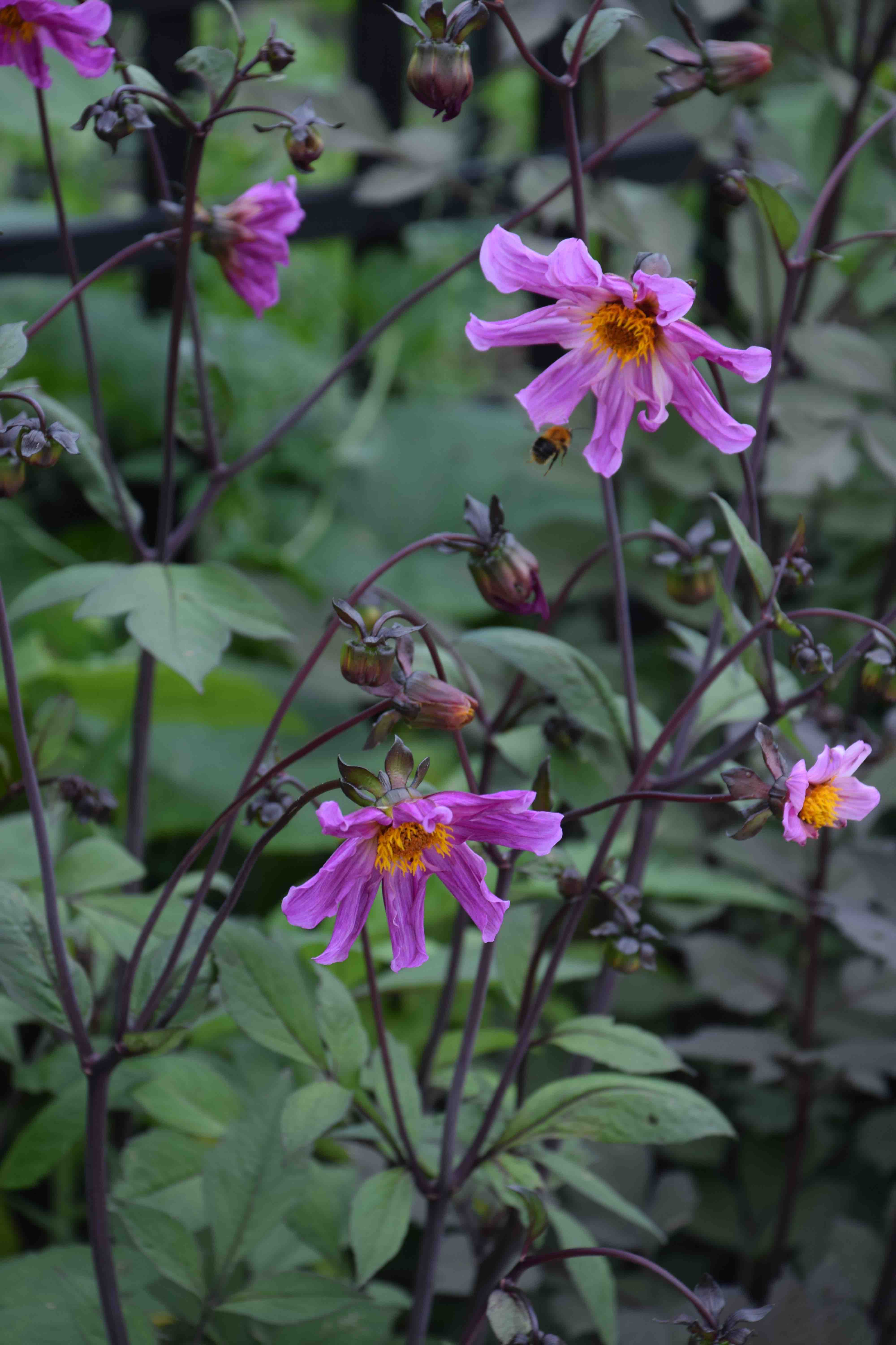 So far, about half the seedlings are pink. Some are compact and about 60cm high while others are twice that. A few have really dark leaves, A few, with red stems and green leaves, have furry stems. All are single. One has definitely nodding flowers and a few are distinctly campanulate, which is not great. I now have to decide which are worth keeping. None are perfect but a few are pretty. I am just surprised by the variation in the flowers. So this post is just to show what sort of surprises you can get when you sow seeds.
