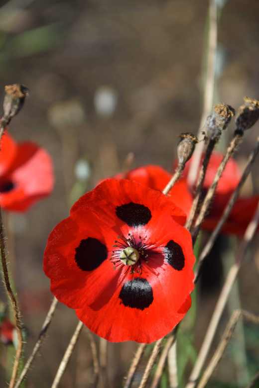 The last flowers are being produced on the ladybird poppy (Papaver commutatum). These were sown in some awful compost (I didn’t know it was awful at the time) and are shorter than they should be but they have struggled on. This is a popular annual because of the vibrant, strikingly marked flowers. Native to north-eastern Turkey eastwards it is sometimes called the Caucasian poppy as well as the ladybird poppy. Sometimes it is given the cultivar name ‘Ladybird’ but it is the same thing. It is a hardy annual and should self seed. I will scrape off the compost and spread it and hope it will come up somewhere else. Apparently ‘commutatum’ means it has had its name changed – which would seem to apply to most plants these days! There are only a few flowers left but they look especially nice against the dead, older stems. There seems to be a thought that the seeds need stratification to germinate but that is not true.