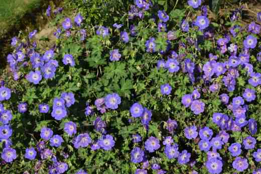 ‘Rozanne’ is definitely a saint, though just a bit smug given all the accolades showered on it. It is a ‘go to’ plant where you need something that will look after itself and just delight you with nonstop flowers of lovely blue. Some geraniums look a bit tawdry by late summer and can be renewed with a haircut. But ‘Rozanne’ doesn’t suffer in this way and just goes on churning out blooms. On the flat it grows to about 25cm high but if there is something to lean against it will throw its limbs higher. Voted ‘Plant of the Century’, it is a great plant.