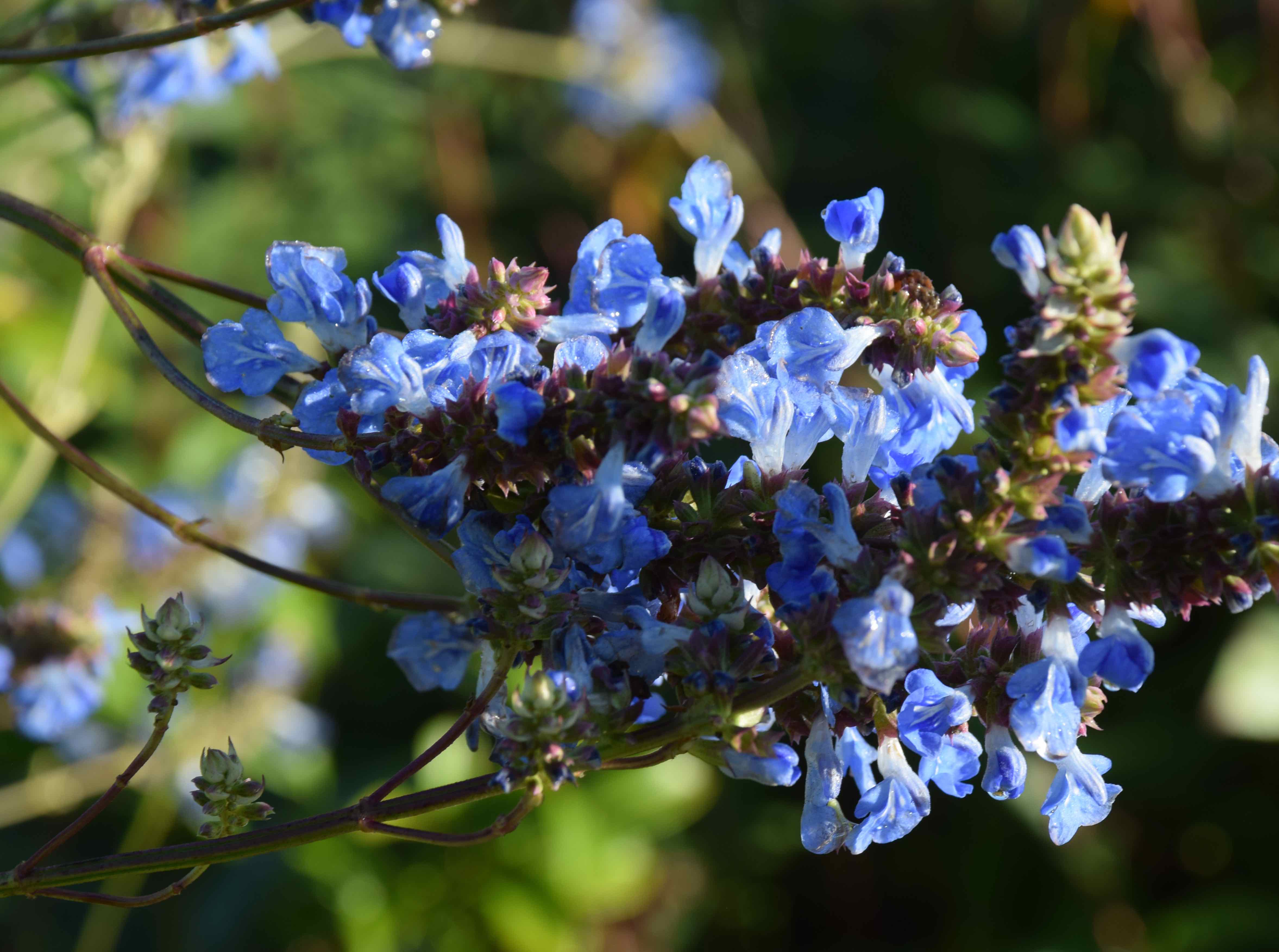 The wind has also been slightly unkind to Salvia uliginosa. I love this plant and it came through last winter unharmed and has made a broad clump in its second year. When the flowers start they seem almost insignificant but now that there must be thousands of flowers it makes quite a show. And I don’t mind that the stems are weighed down by the flowers in the rain, as long as the stems do not break.