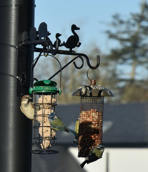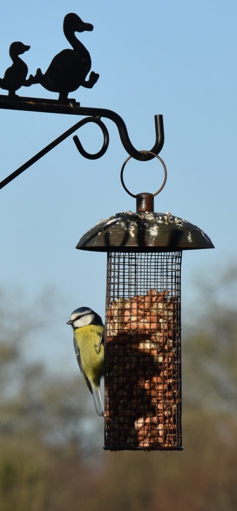 In theory, you could hang peanut feeders near the hedge to try to tempt the tits to feed on the aphids but I don’t really think this is going to be very effective.
