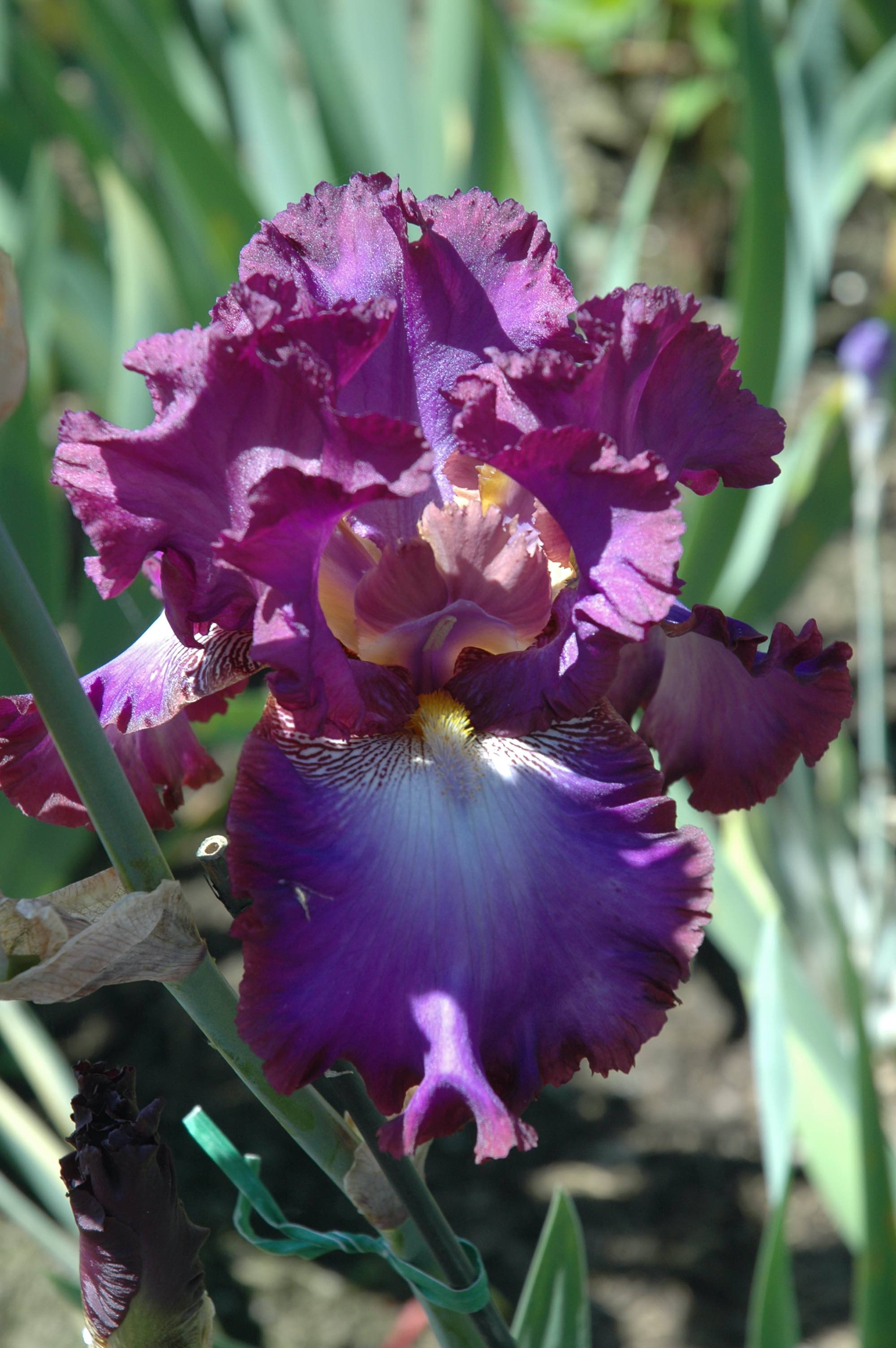 Introduced by Schreiners in 2005, I loved this from the moment I first saw it and I still have it – which is something of a miracle. I happen to like mauve/violet/purple and this is a lovely violet purple that I would call methyl violet – though I am not sure if it is. The pale patch below the beard adds a freshness and the blooms often seem a different colour each day. There is a band of reddish brown around the edge of the fall which has obviously intrigued breeders and shows in lots of varieties. It does ‘edge’ the petals and makes each bloom defined in a clump.