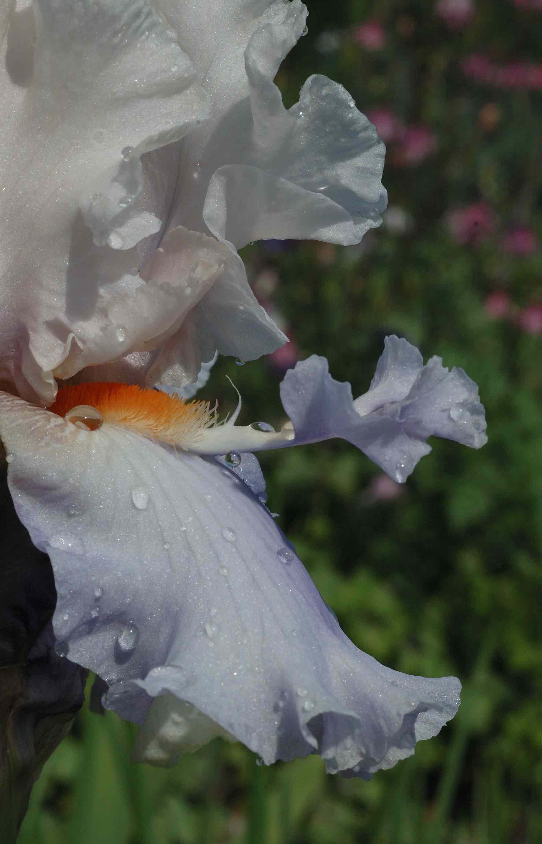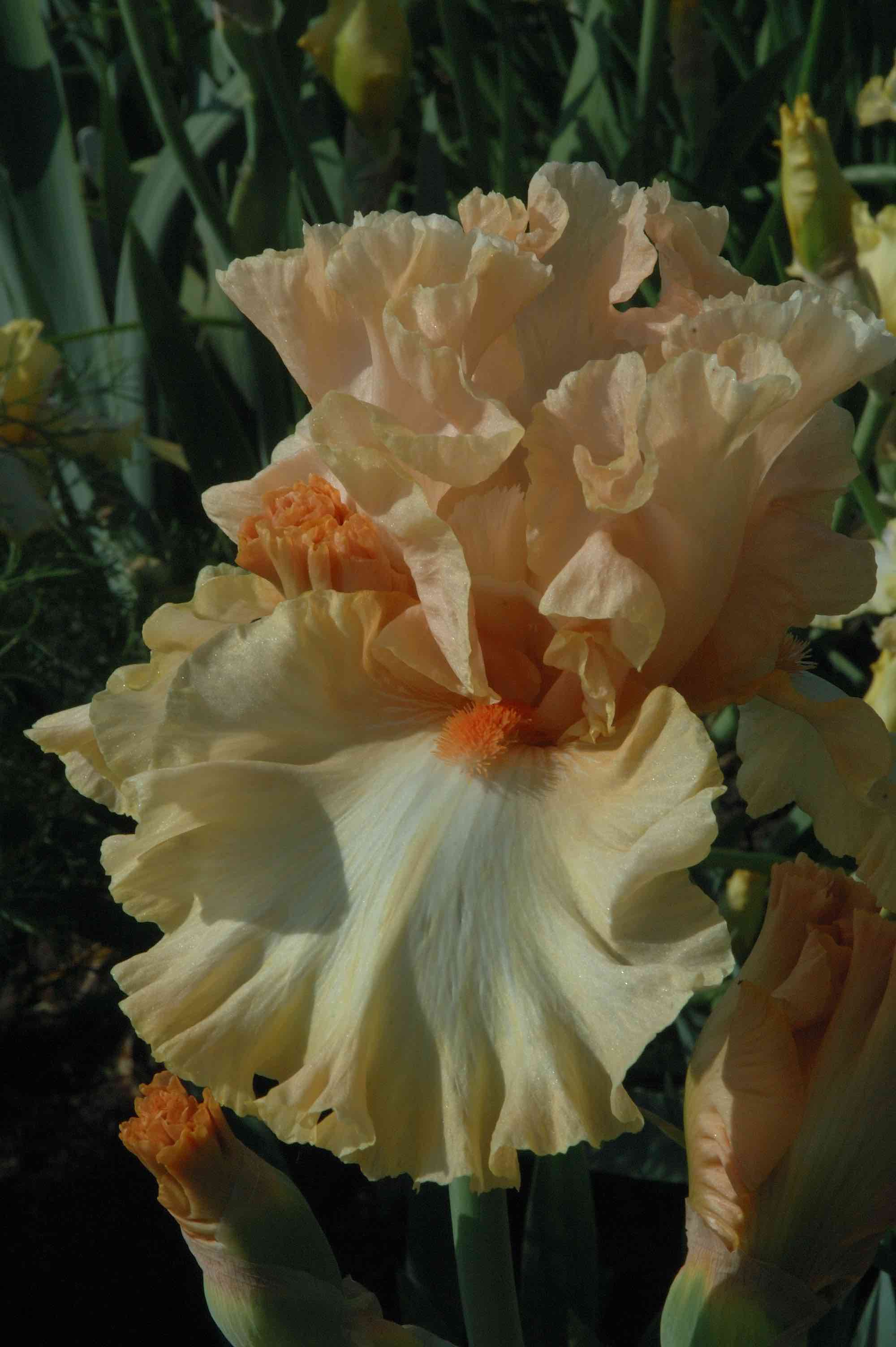 Here we have the first of what will be many bred by Paul Black, one of the most distinguished of iris breeders. Early on I became intrigued by Space Age iris, those that have ‘appendages’ at the ends of the beards. As I get older I do not always think these are necessarily beautiful but when they are transformed into ‘flounces’ I like them, provided they do not destroy the shape of the bloom. ‘Announcement’, registered in 2002, got an Award of Merit in 2006 and combines novelty with lovely colouring and good flower shape. I have to say that these ‘appendages’ which can be described as horns, spoons or flounces, depending on their shape, can be variable and not all flowers, that are capable of producing them, do so all the time.