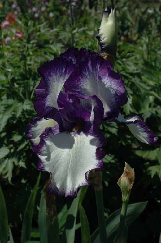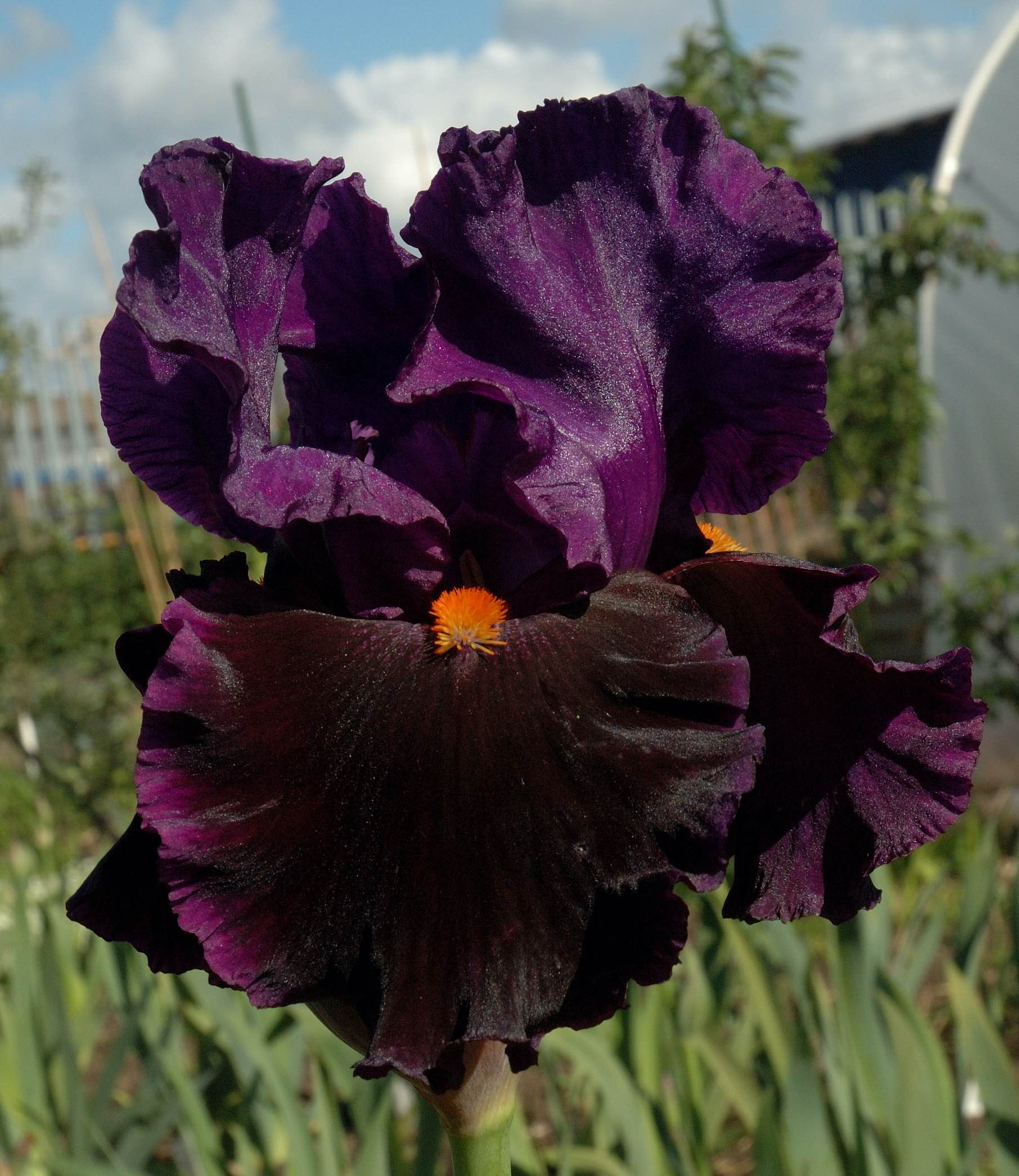 A Keith Keppel introduction from 1995, this is not really black, though it is a good, deep purple. The standards are often paler tan the falls though this does not show from my photo. Those fiery beards really add to the richness of the blooms. It won many awards and is still popular.