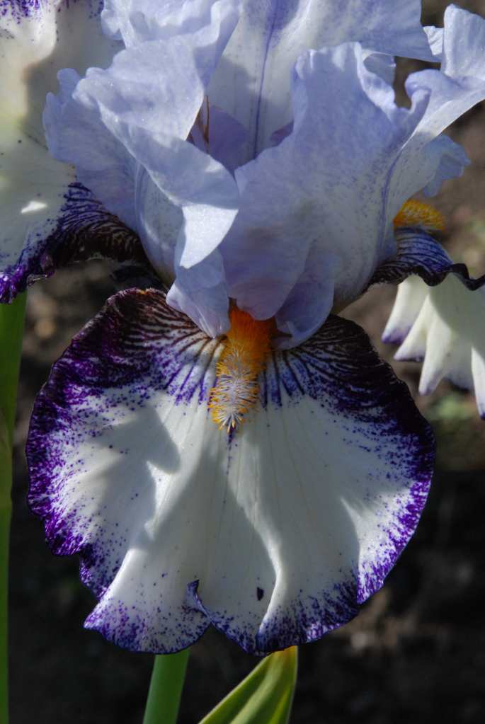 We venture away from the TBs again with ‘Ulalena’, an arilbred. The aril iris are all desert iris from the Middle East and can be demanding to please but their flowers are always unusual and enchanting and they can be crossed with bearded iris. The prolific George Sutton introduced this gem in 2001. It is a crisp flower with an indefinable hint of aril in it and it can rebloom too. It achieved the William Mohr medal, given to iris that are less than half aril, in 2010.