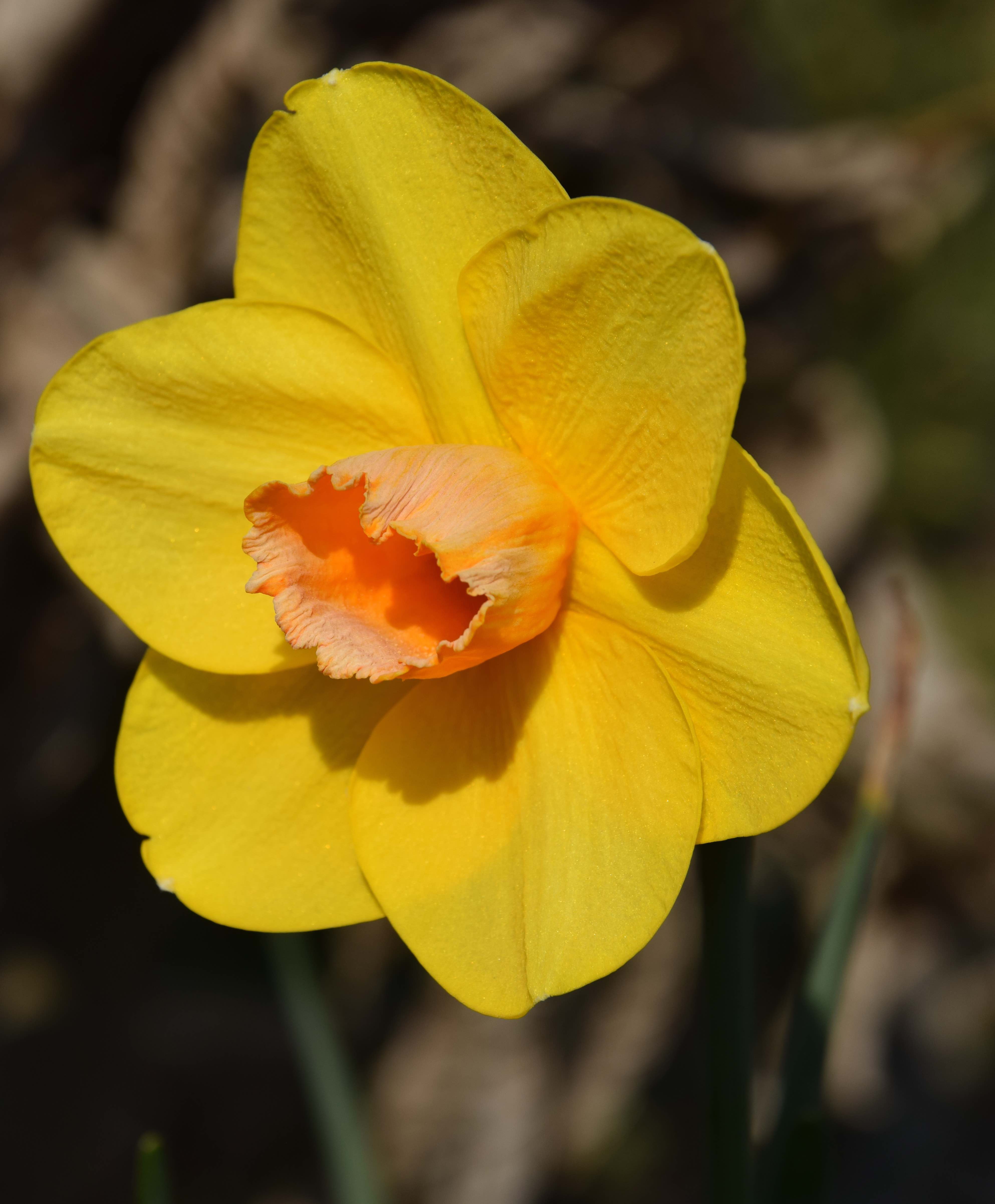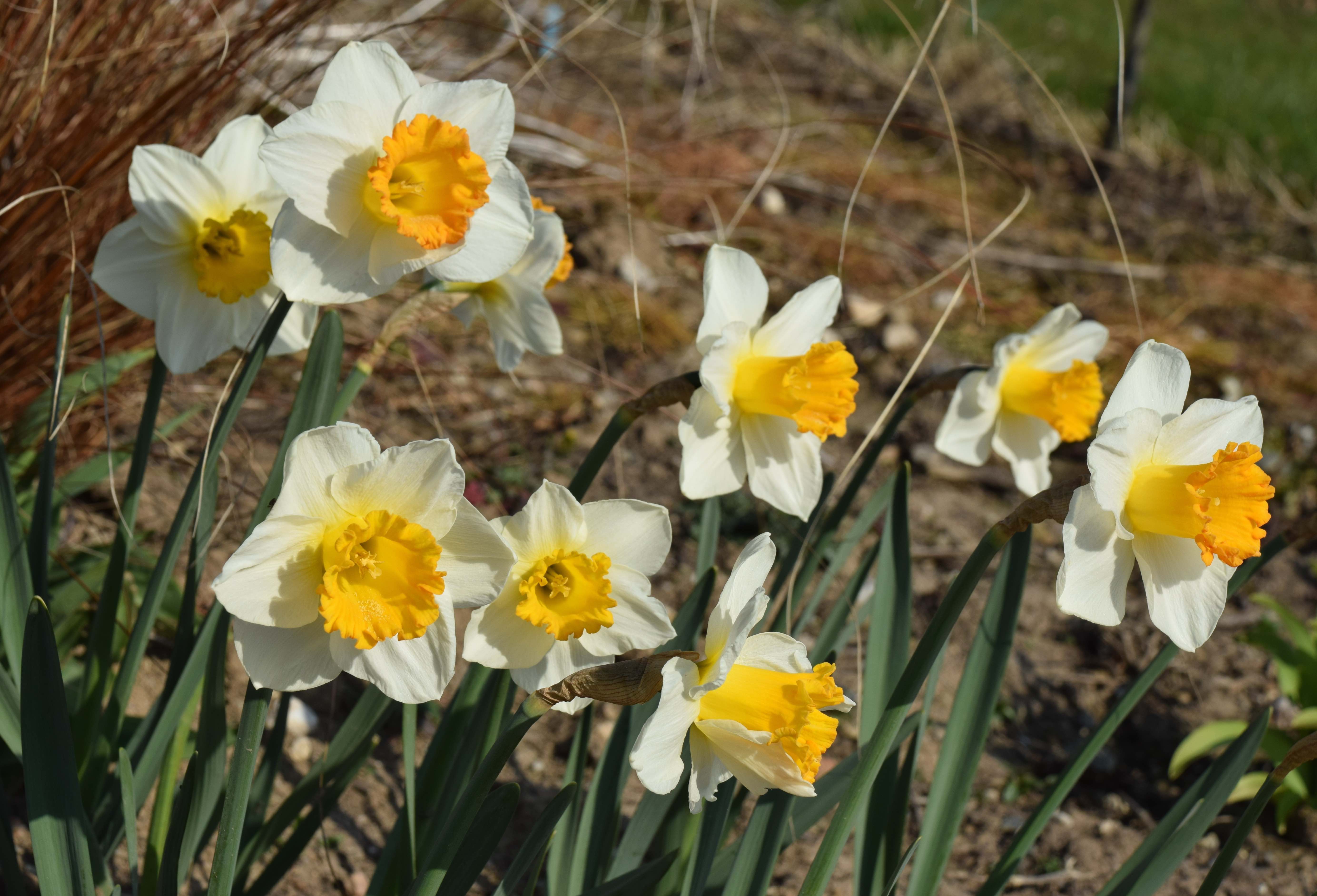 That is a new one to me. I was not aware that the orange parts are more sensitive to scorch. Although I prefer the traditional yellow and white, there are a few odds and ends out there, and some are partially orangish yellow. The weather is famously sunny here. The daffodil and narcissus finished bloom quite a while ago though.