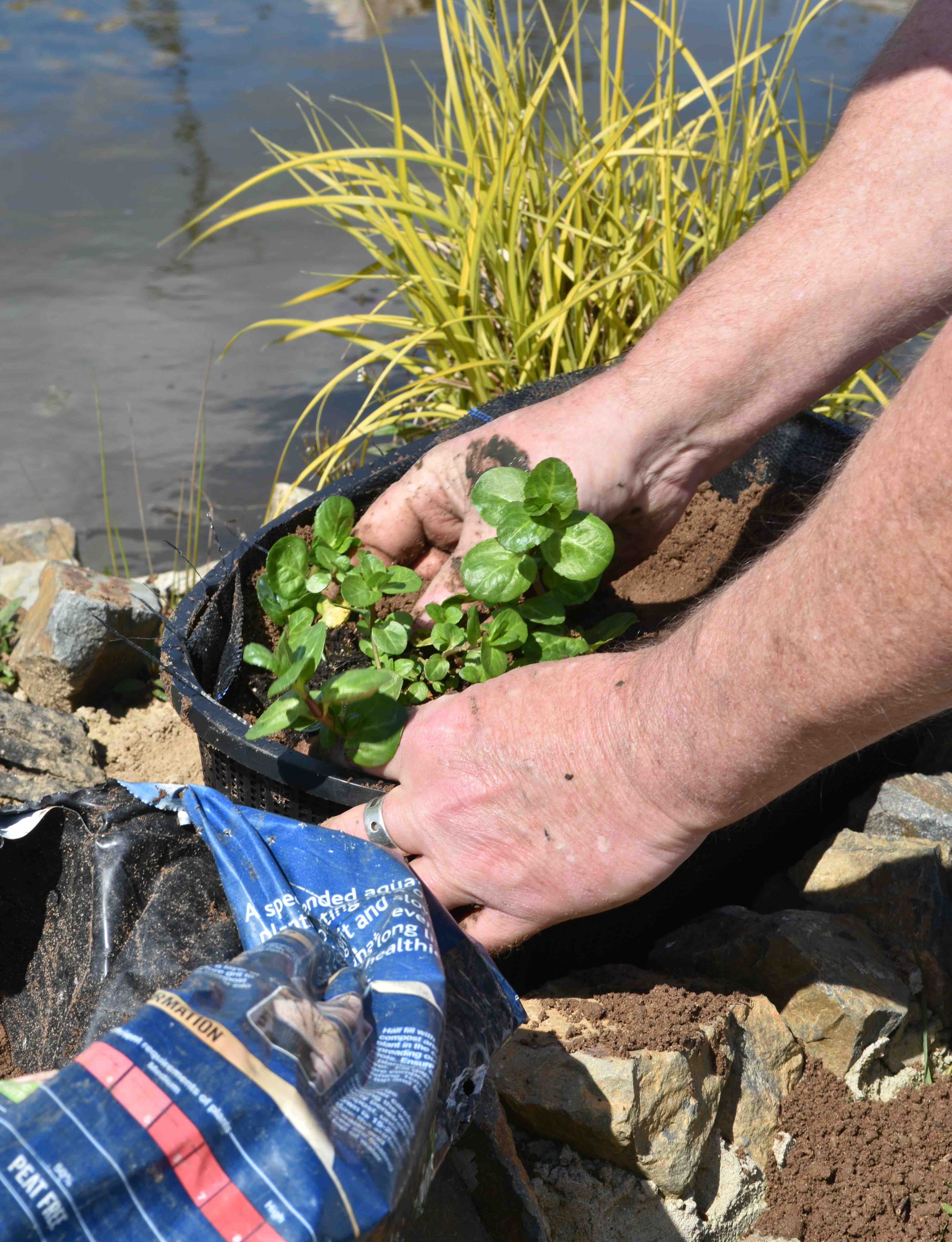 To complicate it all, waterlilies need different depths of water over them and the plants around the edge also need to be planted at different depths, though most are not too picky.