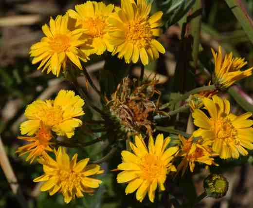 Another freak that has appeared is a calendula with ‘hens and chickens’ flowers. The common pot marigold, sometimes called English marigold to differentiate it from French marigolds or African marigolds, is a common garden plant with many variations. Of course the common names do not accurately describe their origins and calendulas are Mediterranean. I grow a few every year to increase the diversity in the garden and they self seed. Eventually they tend to revert to single, plain orange unless rigorously rogued. This can be tricky because every plant is pretty and self-sown seedlings survive winter and there are blooms virtually all year – as the name ‘calendula’ suggests – being derived from the Latin kalendae, the first day of every month. It has been grown in the British Isles for centuries and one of the strangest variants is the ‘hens and chickens’ form where a number of smaller flowers forms around the base of the main flower. Of course, to satisfy the pendants (including me), I use the term ‘flower’ loosely because each ‘flower’ is a head of flowers. The form is properly called ‘Prolifera’ and a similar thing happens in daisies (Bellis perennis) and perhaps it happens in other Asteraceae genera, though I can’t think of any at the moment. A similar form can be found in an ugly Papaver somniferum with clustered seed pods.