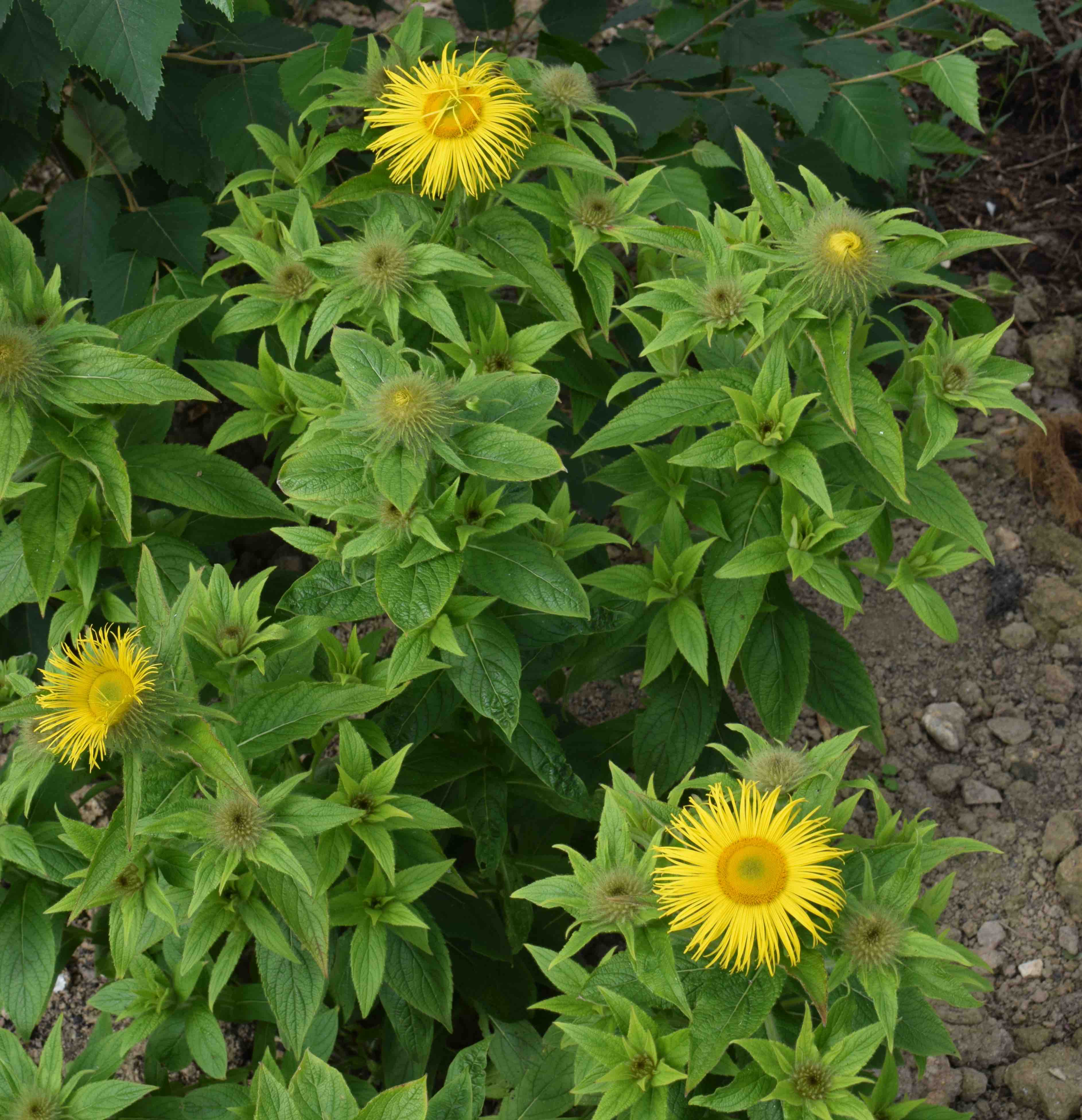 The one that is the least sensible option for most gardens is the aptly named Inula magnifica. I planted this in my parent’s garden about 45 years ago (I was only in my teens) and, amazingly, dad did plant around it and tolerated it for a long time, even after I had left home. So I was glad to find a small plant for sale two years ago and popped it into a bed last year. It was not overly happy and did not bloom last year, much as I expected – it was young after all, and when someone last summer said they would like a piece it was the perfect excuse to dig it up, chop off a lump, and reposition it. Even within a year the rootball had become about as large as I could manage and it was dropped into a new hole in a newly dug bed. The soil here is even worse than the bed it had jumped out of, but it has done as well as I could hope and is packed with flower stems. They are not as tall as they should, and could, be but I am happy.