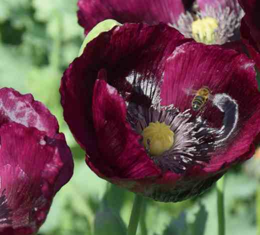 I mentioned the opium poppies ‘Lauren’s Grape’ last week. They are not my favourite flowers but they have proved to be a huge hit with the bees. Bumblebees literally roll around in the blooms as if in ecstasy, vibrating the stamens to get at the pollen while honeybees almost battle over the blooms. I regard them as a success in my attempts to make the bees happy.