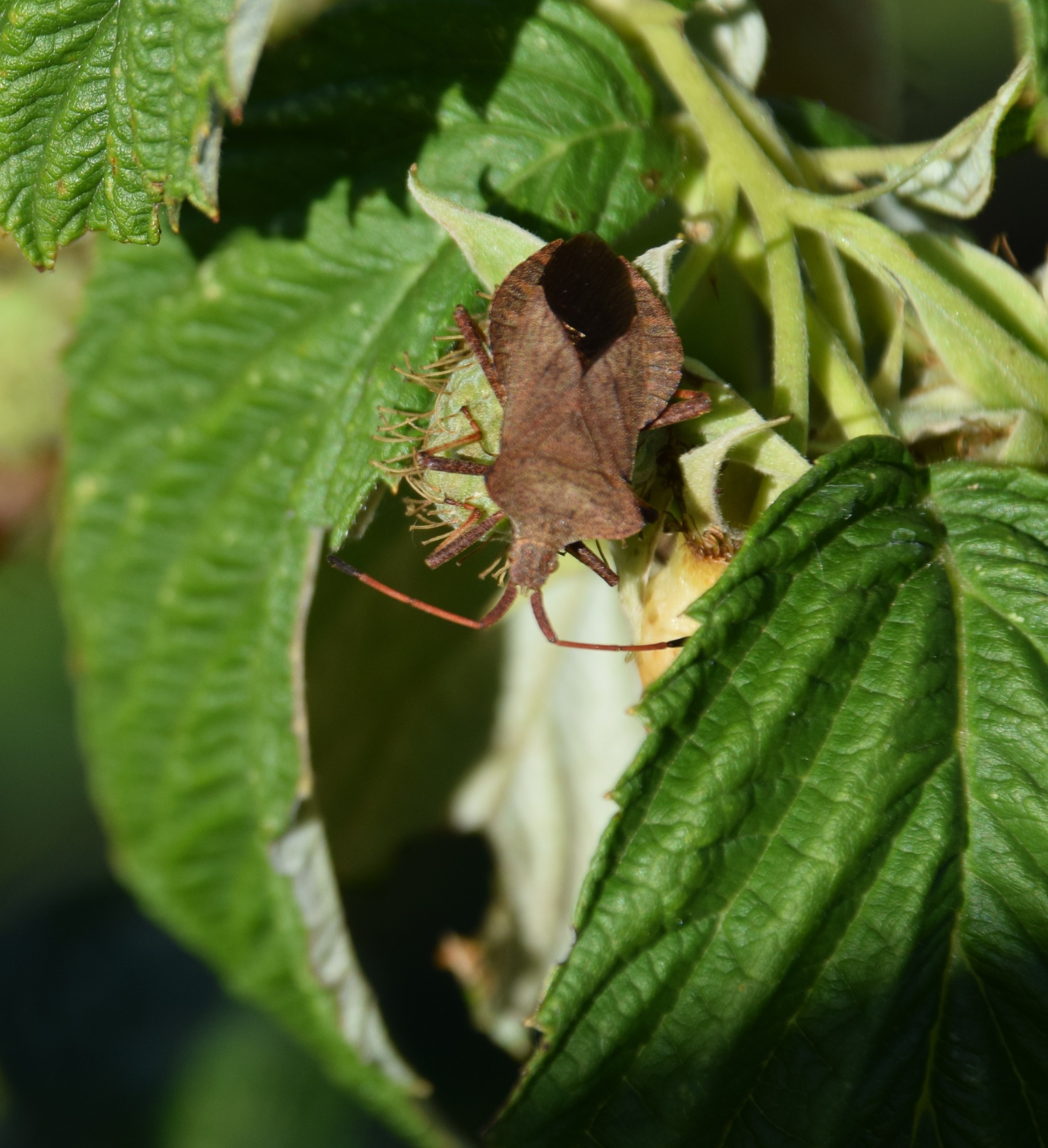 There are ten species of Coreidae (squash bugs) in the British Isles and the dock bug is one of the most common. True shield bugs are not as flat and the most common is the green shield bug (Palomena prasina), which usually feeds on brambles (rubus) but this one was happy with my raspberries. They are supposed to eat fruits as well as leaves and I did notice that some of the drupes on the raspberries were paler than the others so I assume these had been ‘sucked’. It all makes me want to chuck out the raspberries and eat a steak knowing that I am the second creature to enjoy the raspberries.