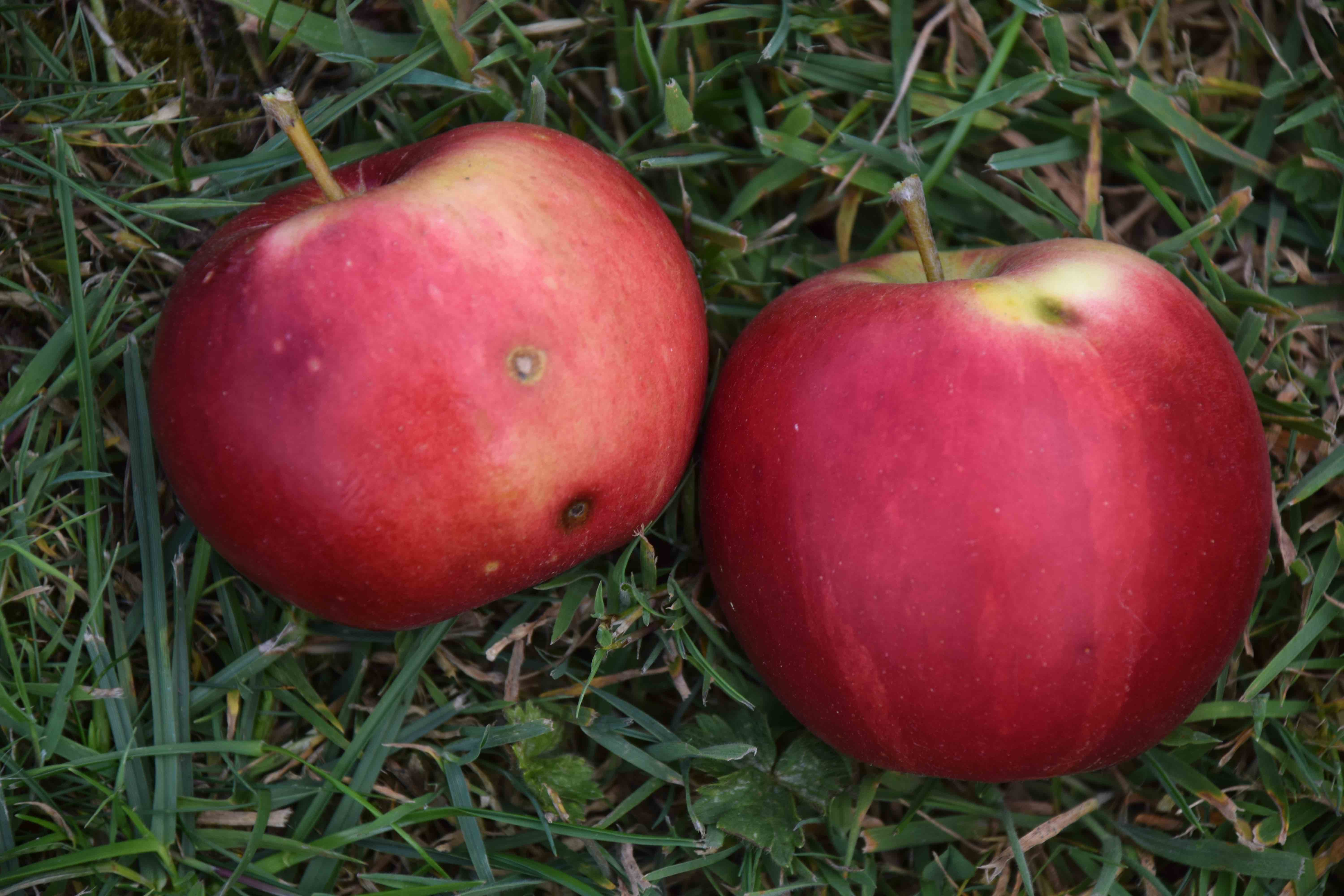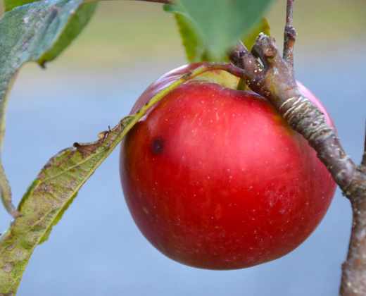 The best apple, so far, is ‘Scrumptious’. I had not realised that this was as early as it is and it follows on from other earlies. It is the first year it has cropped. The tree has not grown as fast as some others but there is a good crop. The apples are beautiful but they do have some scab spots that spoil the skins – inevitable if you don’t spray, perhaps. The skins are bright red apart from very pale green where the skin is shaded. The flesh is crunchy and melting and white. You don’t end up with a mouthful of chewy flesh. They are really juicy and sweet and very tasty. I sometimes think there is a hint of aniseed at the first bite and this is a characteristic. This is a modern apple, (1980) and a cross between ‘Discovery’ and ‘Golden Delicious’ that is better than either parent. It is a really delicious apple and although there are others starting to ripen this is the only one I want to eat. I almost wish I planted two of these! But as early apples do not store well it is probably just as well I didn’t. It has the RHS Award of Garden Merit.