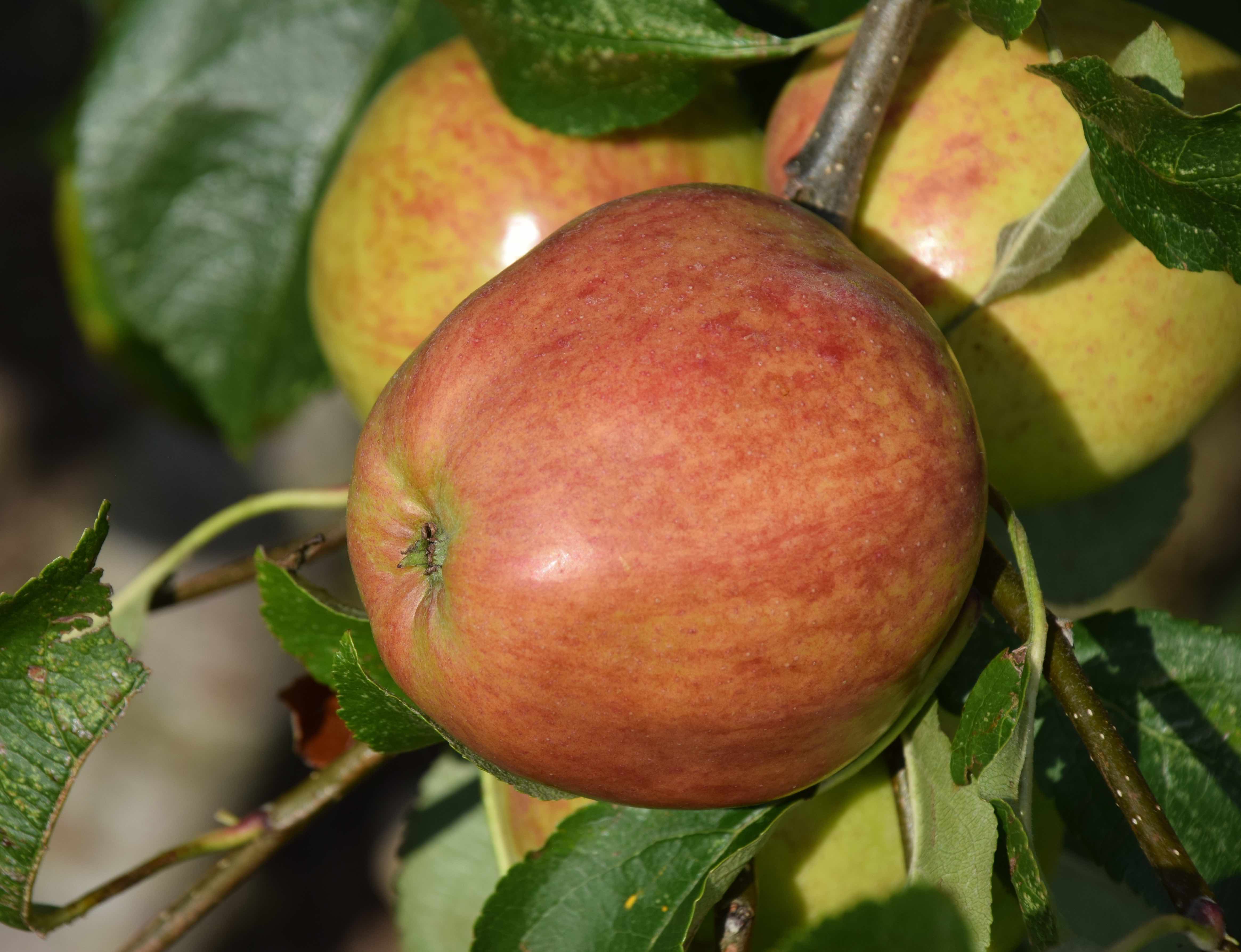 ‘American Mother’ is an old apple. But unlike many other ancient apples, it actually looks really attractive, with red skin and a good, rather conical shape. It originated in Massachusetts, in Bolton, Worcester County, and although the exact date is not known, the first records were in 1844. It made its way across the Atlantic and was introduced by the nursery of Thomas Rivers (1798-1877 – owner of one of the most important UK fruit nurseries, in Sawbridgeworth, Hertfordshire) and became very popular in the UK between the ‘two wars’. But this apple must have some good properties because it received the Award of Garden Merit from the RHS in 1993.